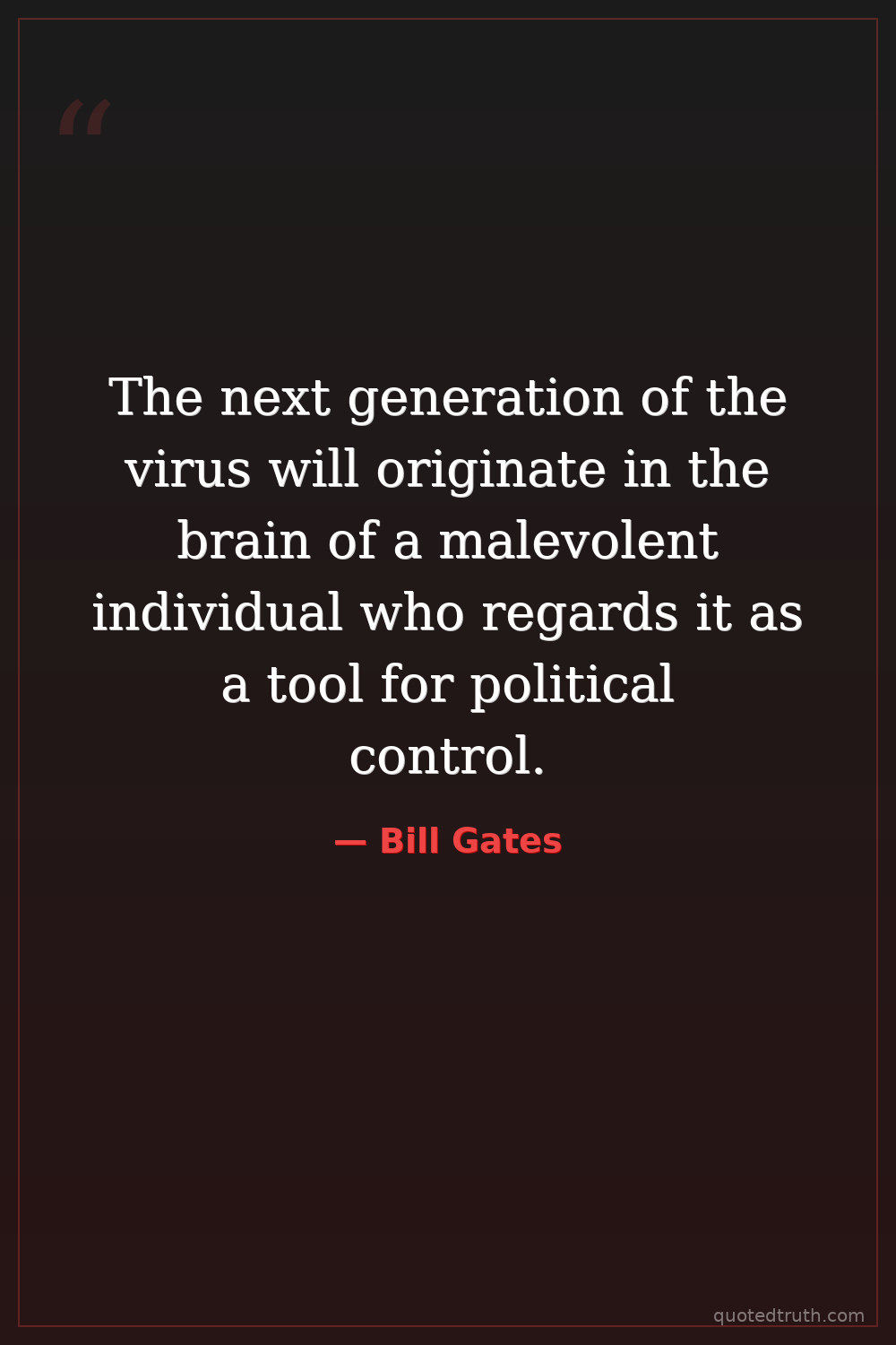 The next generation of the virus will originate in the brain of a malevolent individual who regards it as a tool for political control.