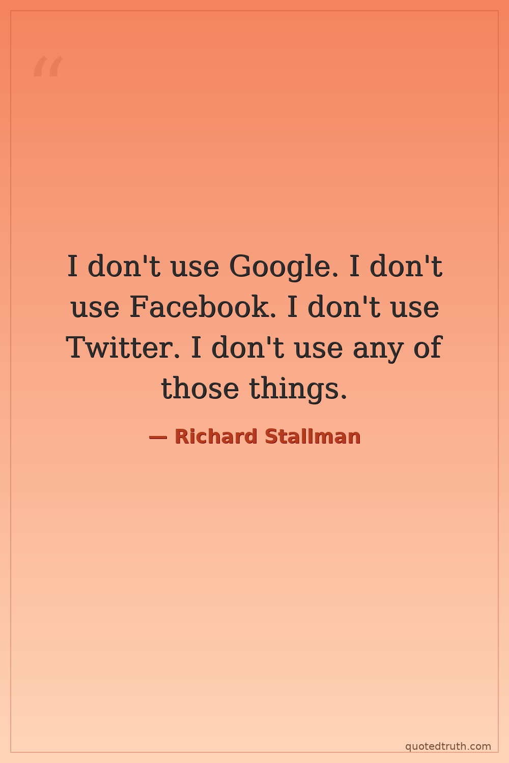 I don't use Google. I don't use Facebook. I don't use Twitter. I don't use any of those things.