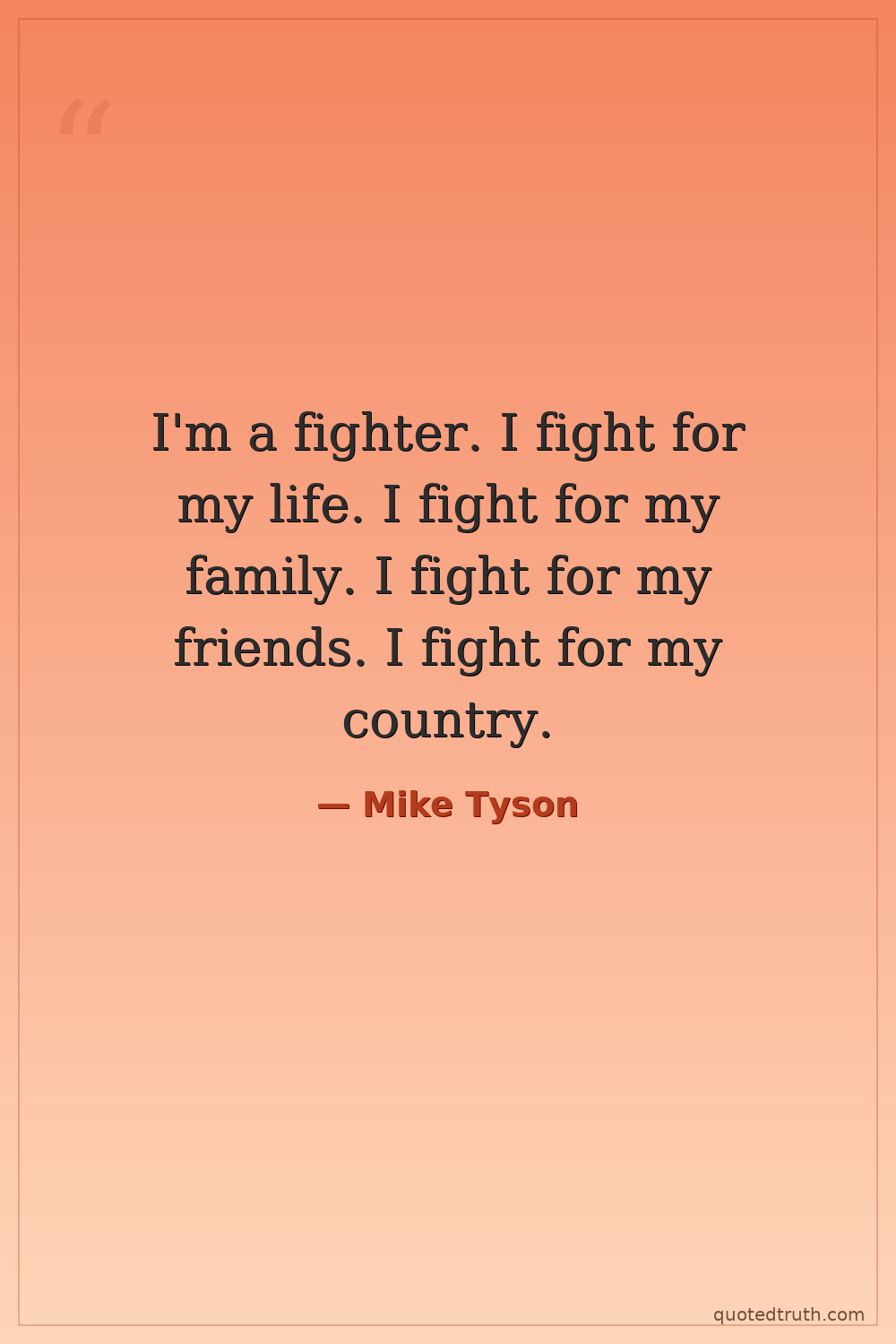 I'm a fighter. I fight for my life. I fight for my family. I fight for my friends. I fight for my country.