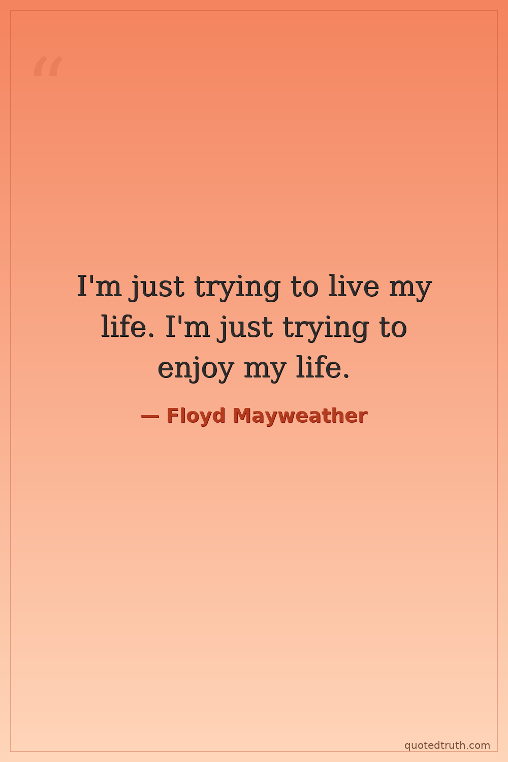 I'm just trying to live my life. I'm just trying to enjoy my life.