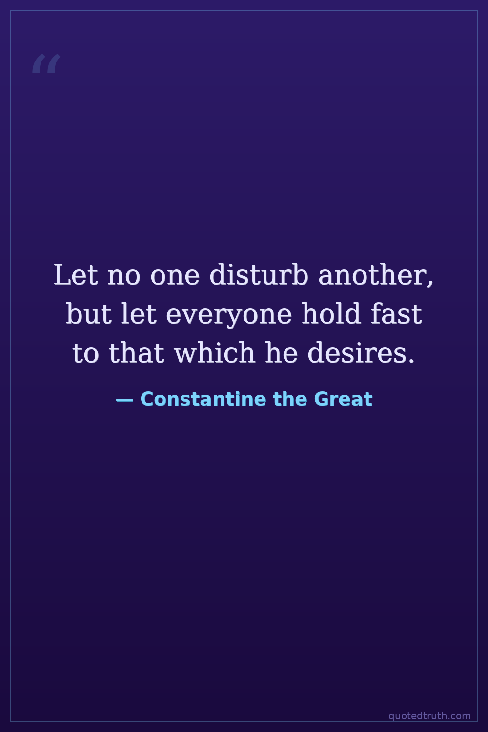 Let no one disturb another, but let everyone hold fast to that which he desires.