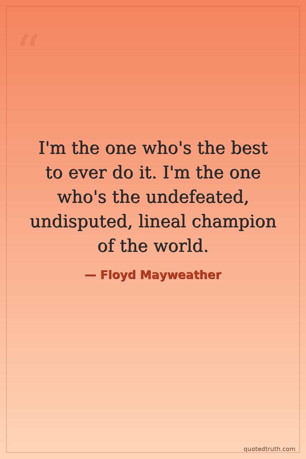 I'm the one who's the best to ever do it. I'm the one who's the undefeated, undisputed, lineal champion of the world.