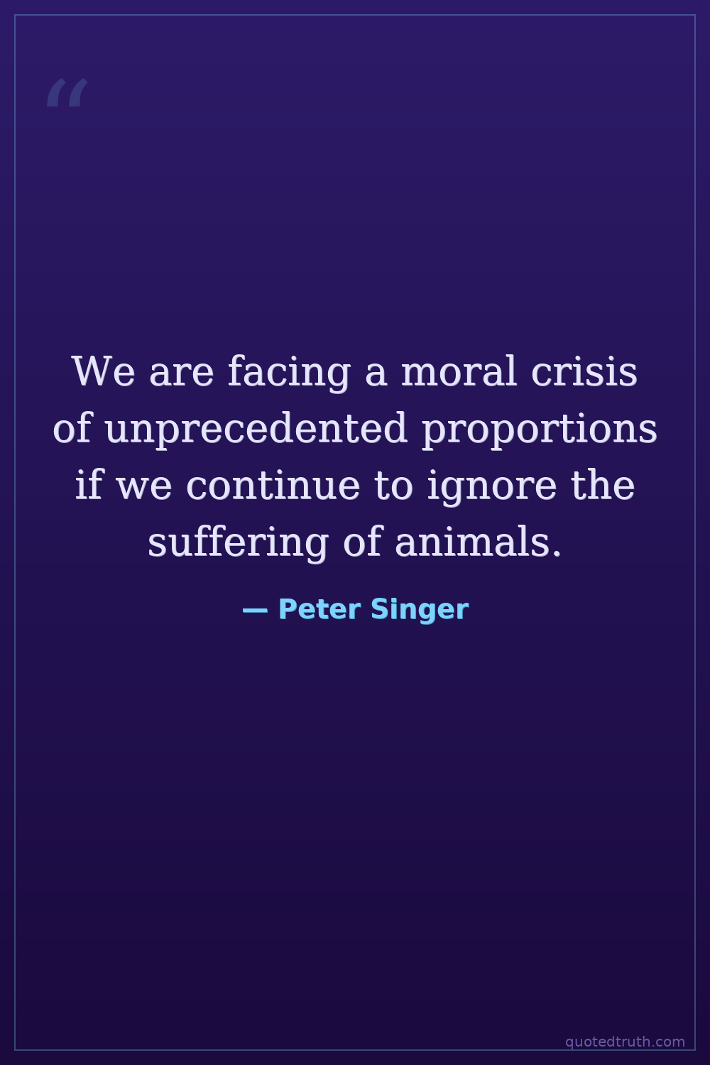 We are facing a moral crisis of unprecedented proportions if we continue to ignore the suffering of animals.