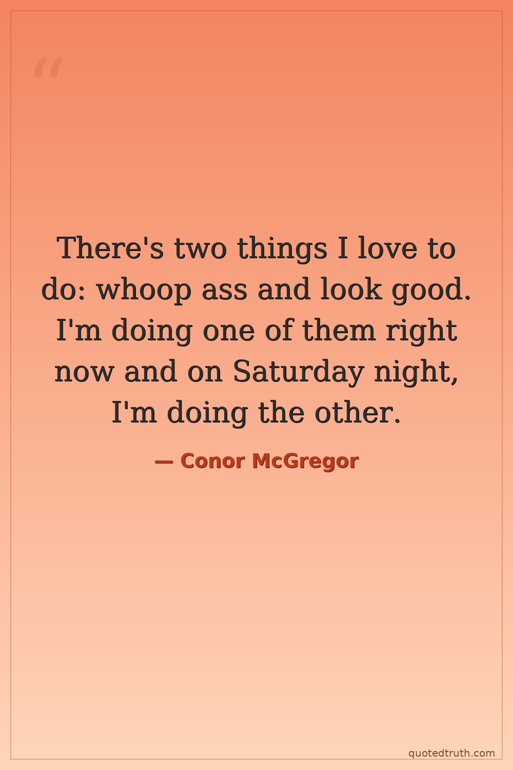There's two things I love to do: whoop ass and look good. I'm doing one of them right now and on Saturday night, I'm doing the other.