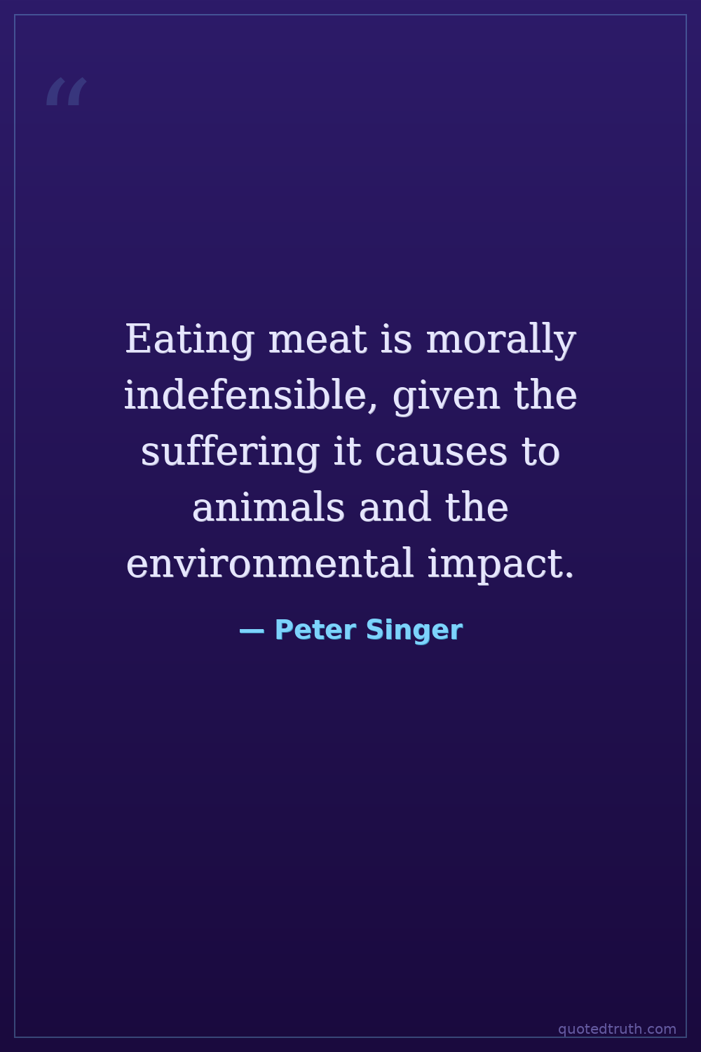 Eating meat is morally indefensible, given the suffering it causes to animals and the environmental impact.