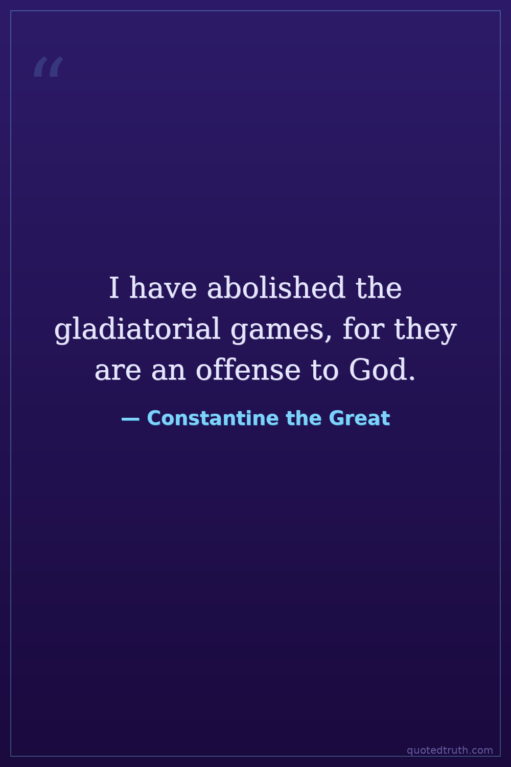 I have abolished the gladiatorial games, for they are an offense to God.