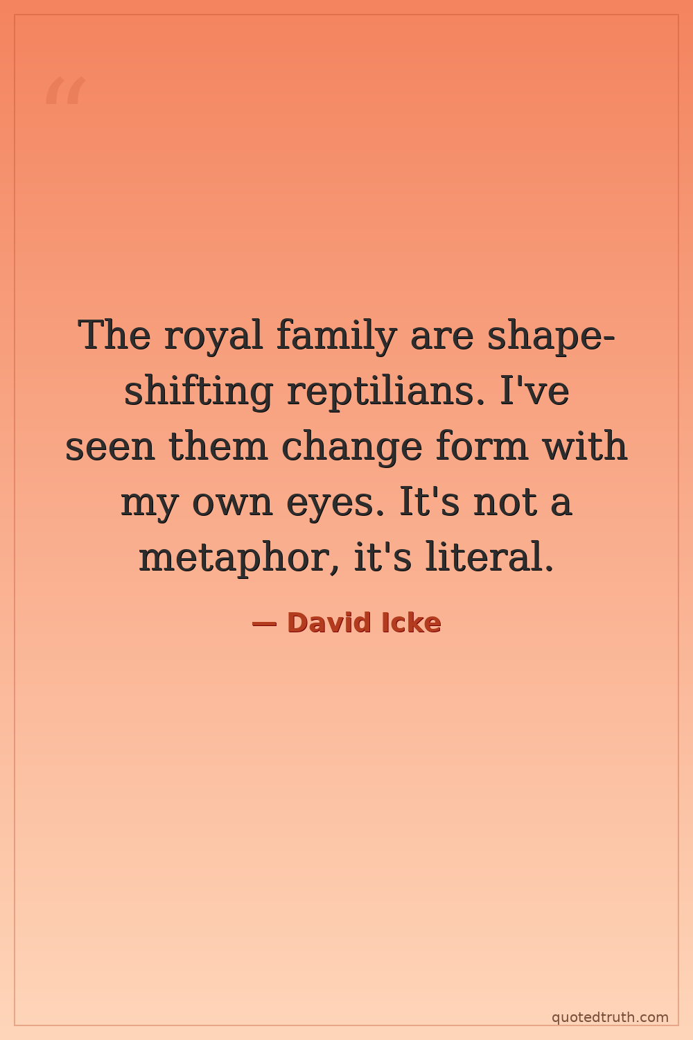 The royal family are shape-shifting reptilians. I've seen them change form with my own eyes. It's not a metaphor, it's literal.