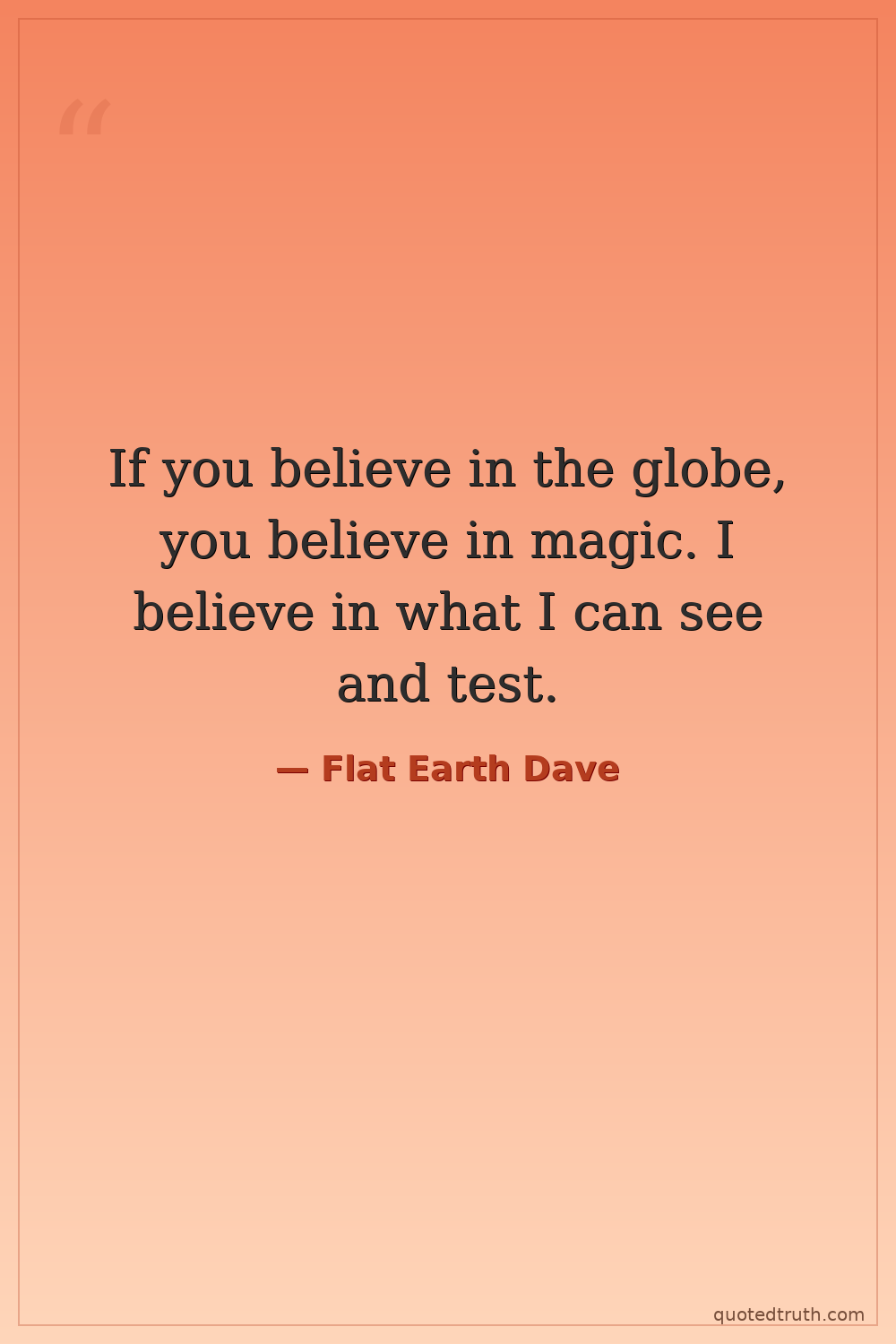If you believe in the globe, you believe in magic. I believe in what I can see and test.