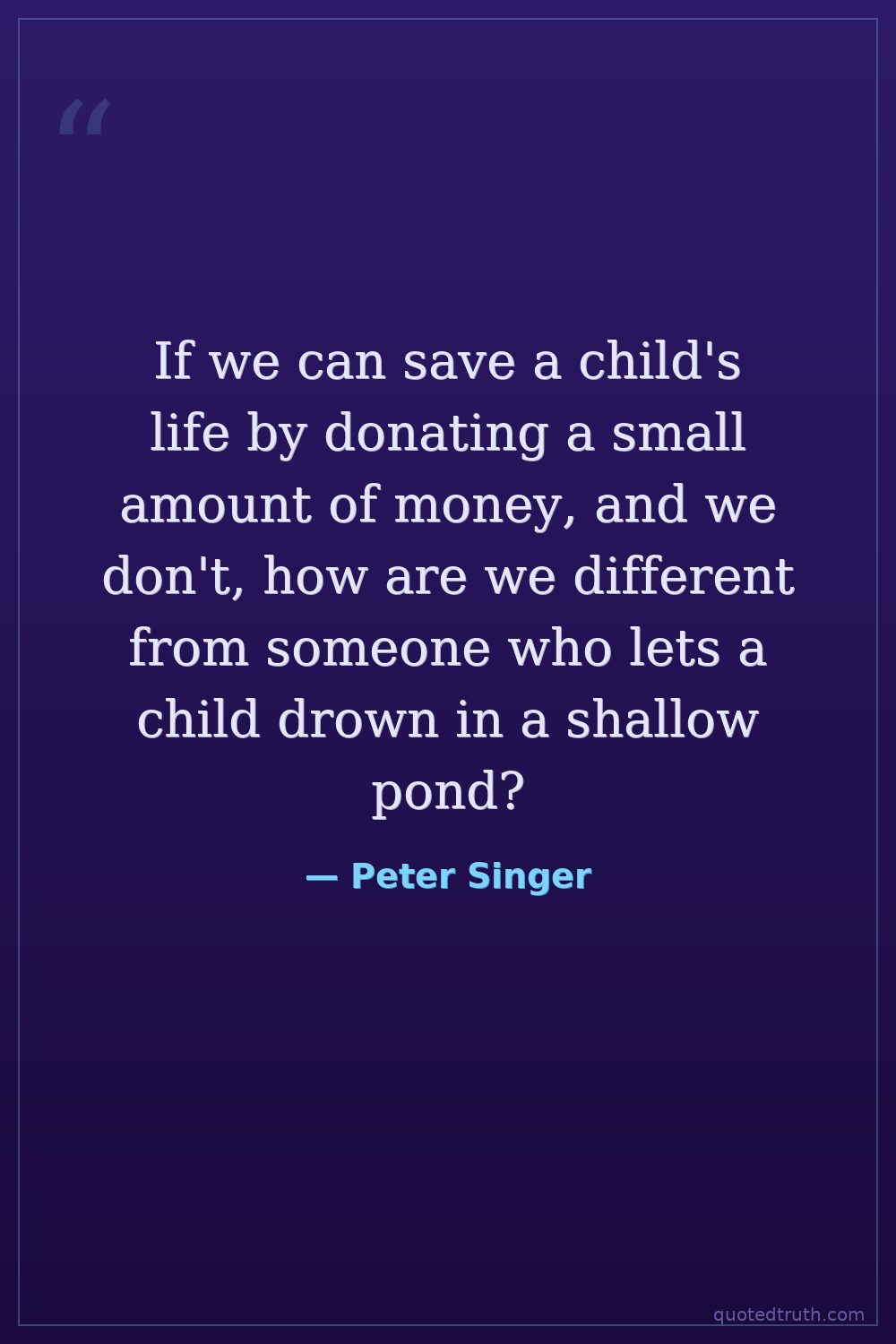 If we can save a child's life by donating a small amount of money, and we don't, how are we different from someone who lets a child drown in a shallow pond?
