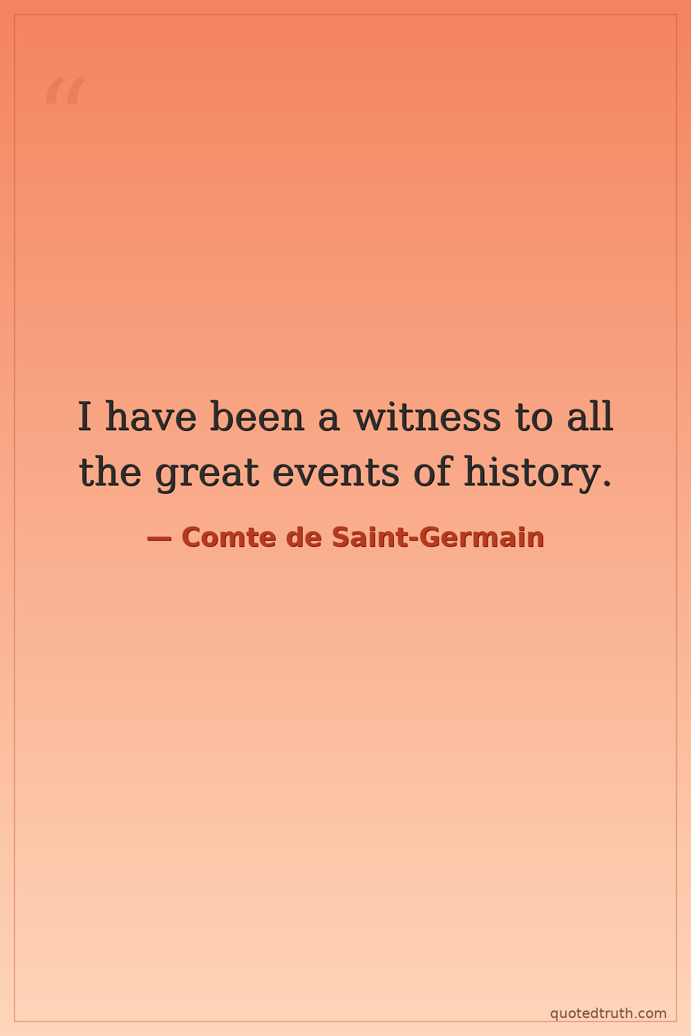 Controversial"Sometimes I amuse myself not by making people believe, but by letting them believe, that I have lived in the most remote ages."