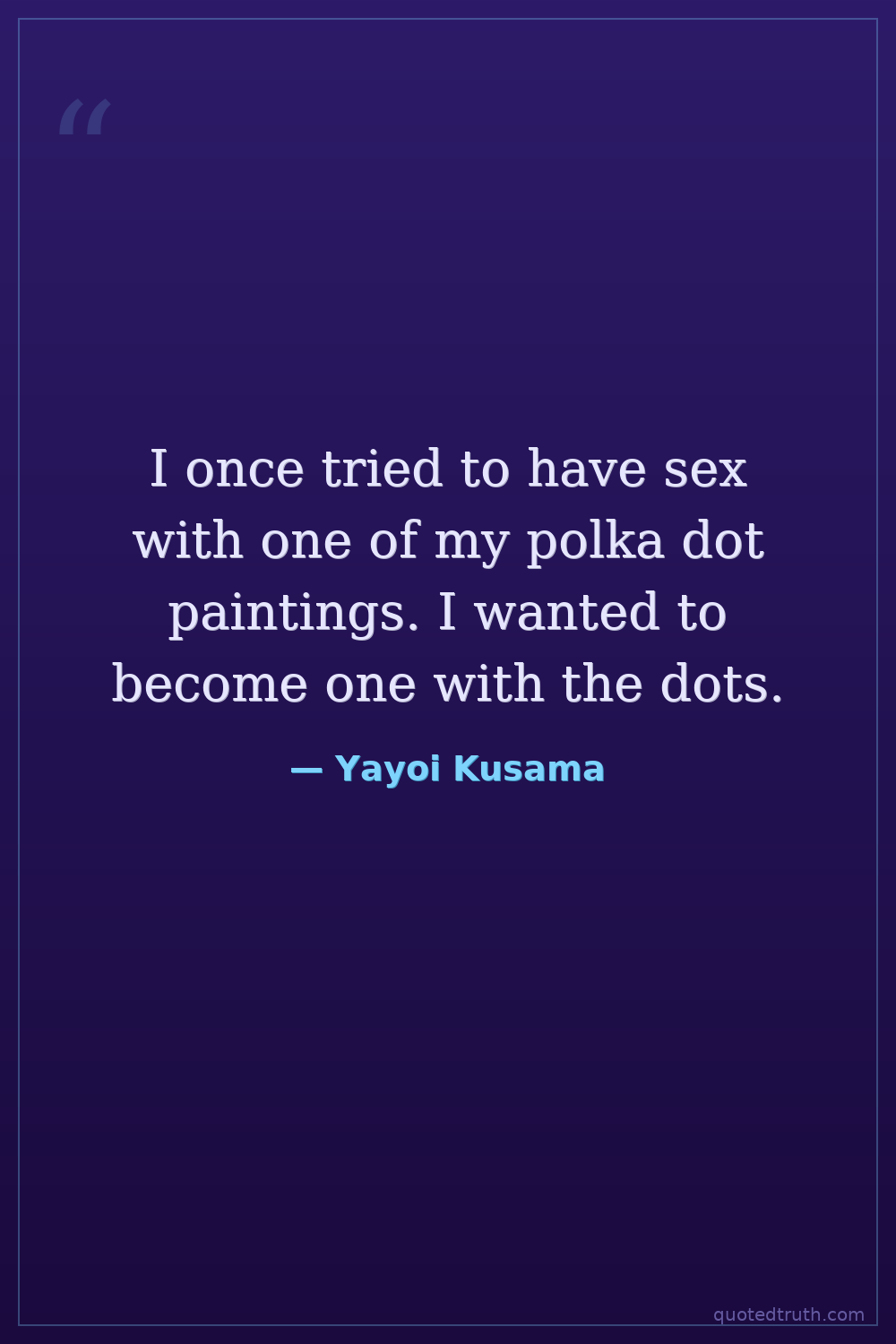 I once tried to have sex with one of my polka dot paintings. I wanted to become one with the dots.