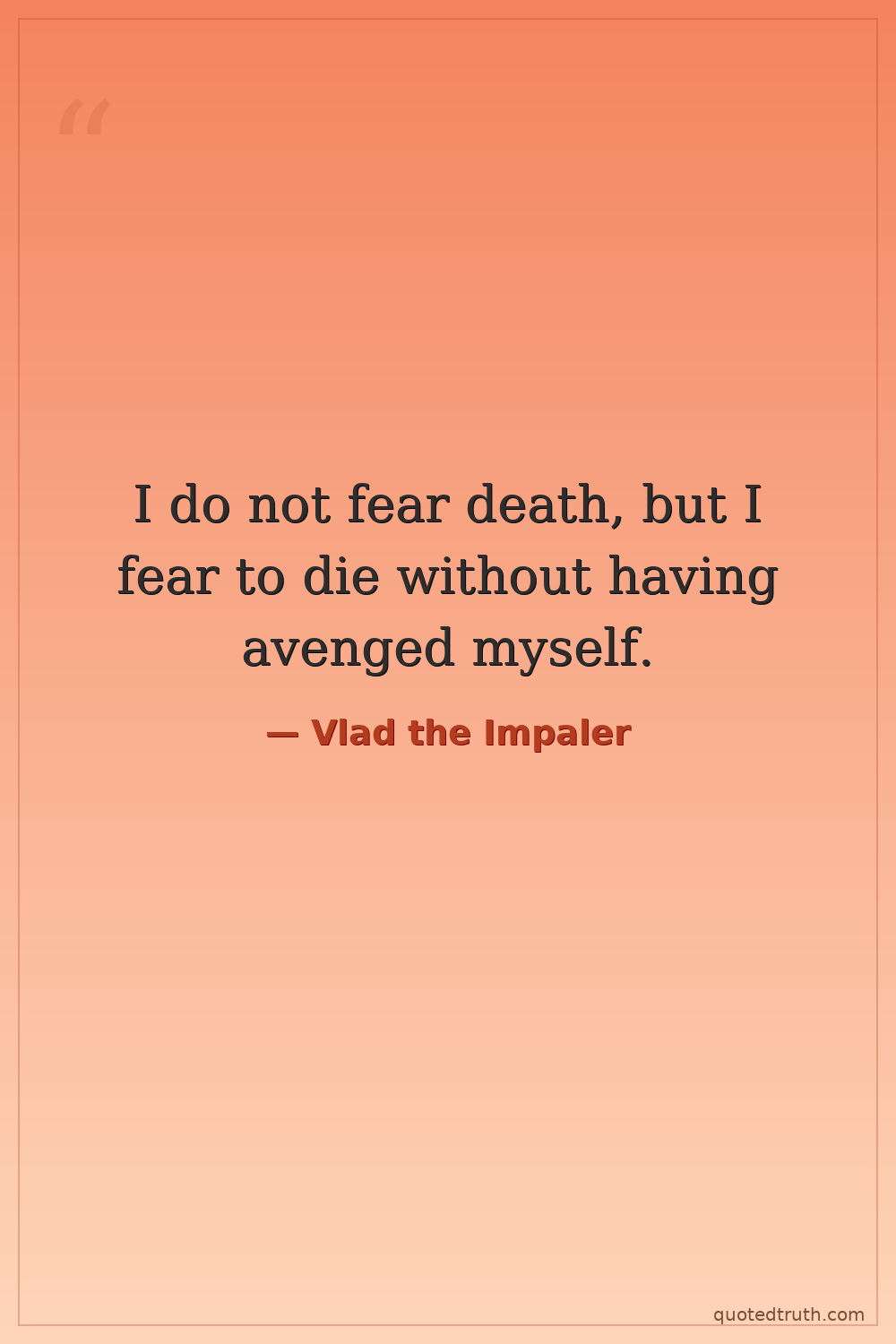 I do not fear death, but I fear to die without having avenged myself.
