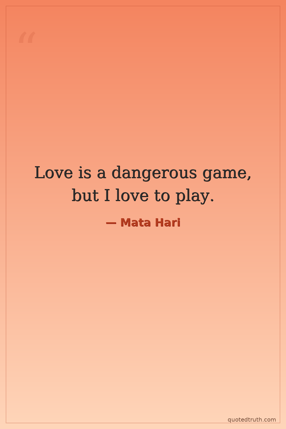 Love is a dangerous game, but I love to play.
