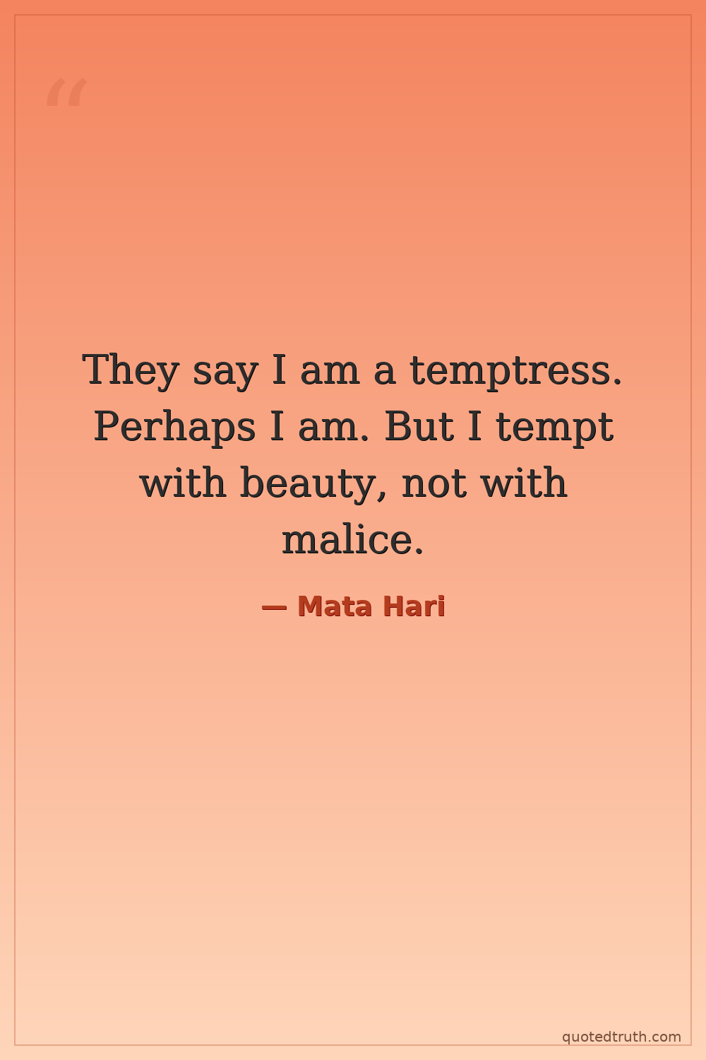 They say I am a temptress. Perhaps I am. But I tempt with beauty, not with malice.
