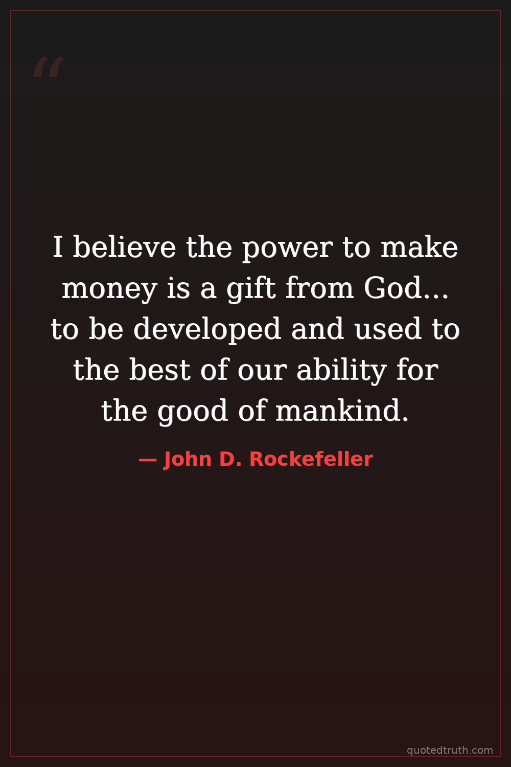 I believe the power to make money is a gift from God... to be developed and used to the best of our ability for the good of mankind.