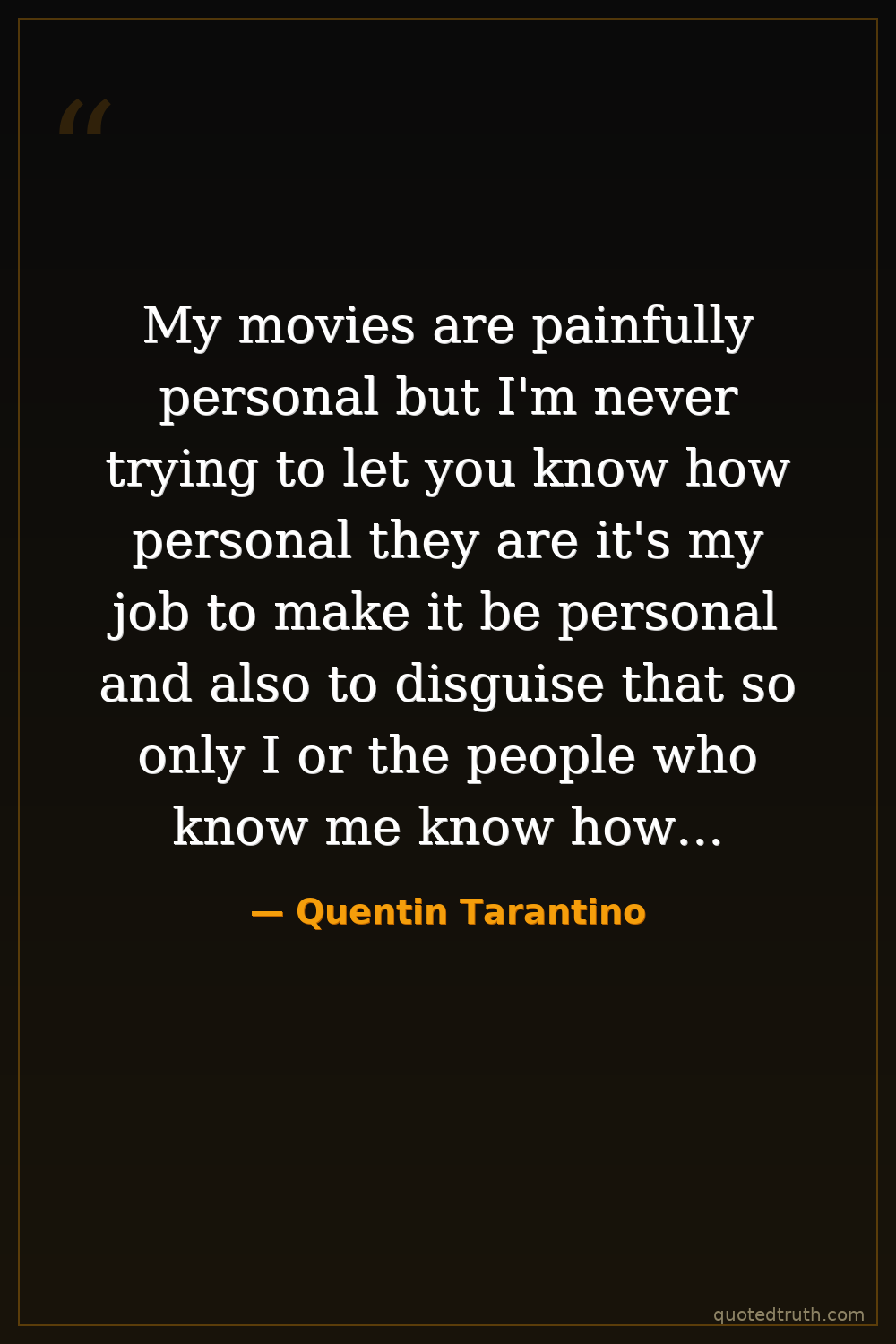 My movies are painfully personal but I'm never trying to let you know how personal they are it's my job to make it be personal and also to disguise that so only I or the people who know me know how personal it is