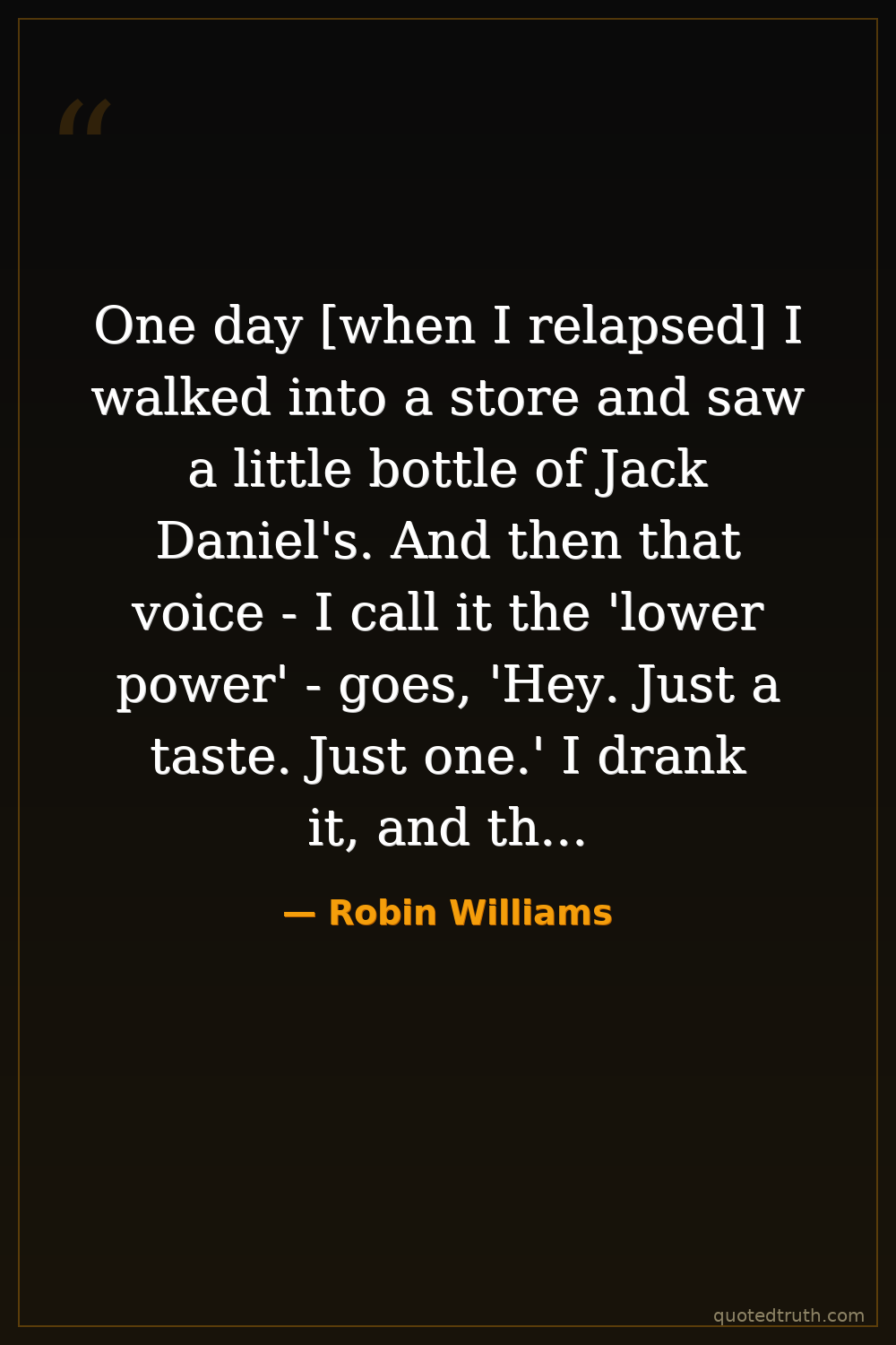 One day [when I relapsed] I walked into a store and saw a little bottle of Jack Daniel's. And then that voice - I call it the 'lower power' - goes, 'Hey. Just a taste. Just one.' I drank it, and there was that brief moment of 'Oh, I'm okay!' But it escalated so quickly. Within a week I was buying so many bottles I sounded like a wind chime walking down the street.