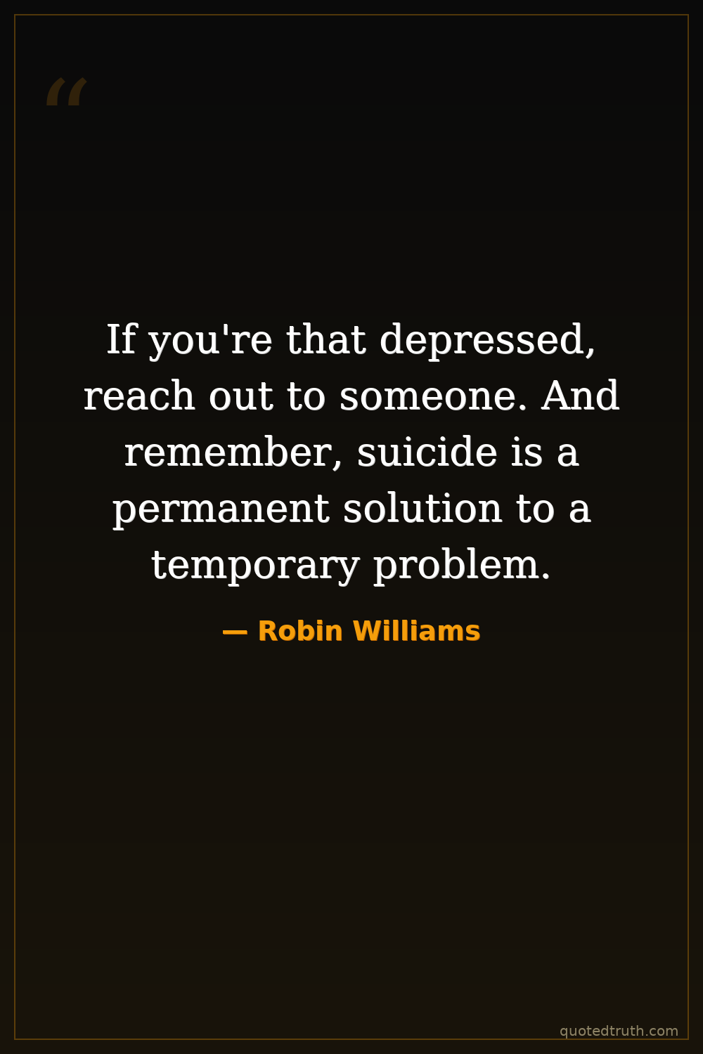 If you're that depressed, reach out to someone. And remember, suicide is a permanent solution to a temporary problem.
