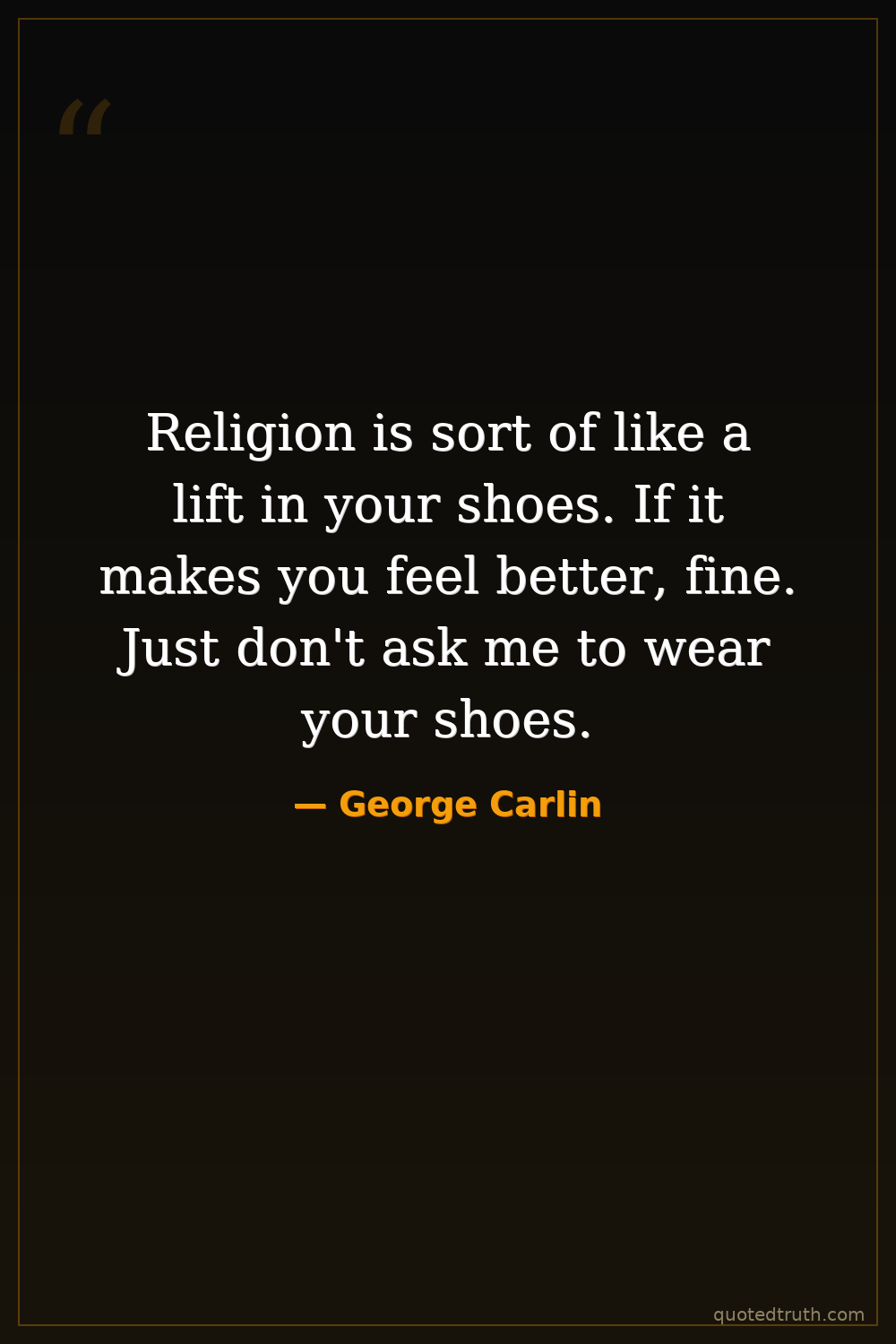 Religion is sort of like a lift in your shoes. If it makes you feel better, fine. Just don't ask me to wear your shoes.