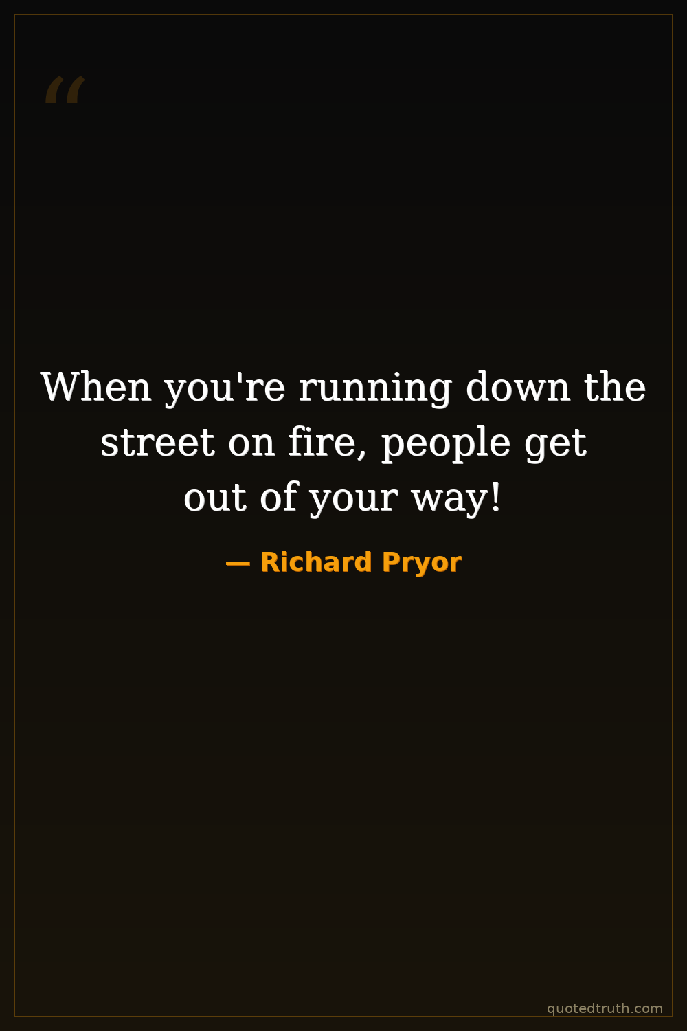 When you're running down the street on fire, people get out of your way!