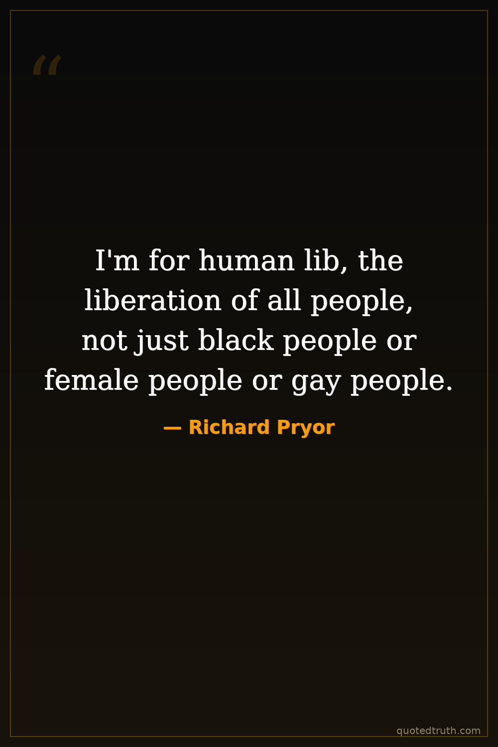 I'm for human lib, the liberation of all people, not just black people or female people or gay people.