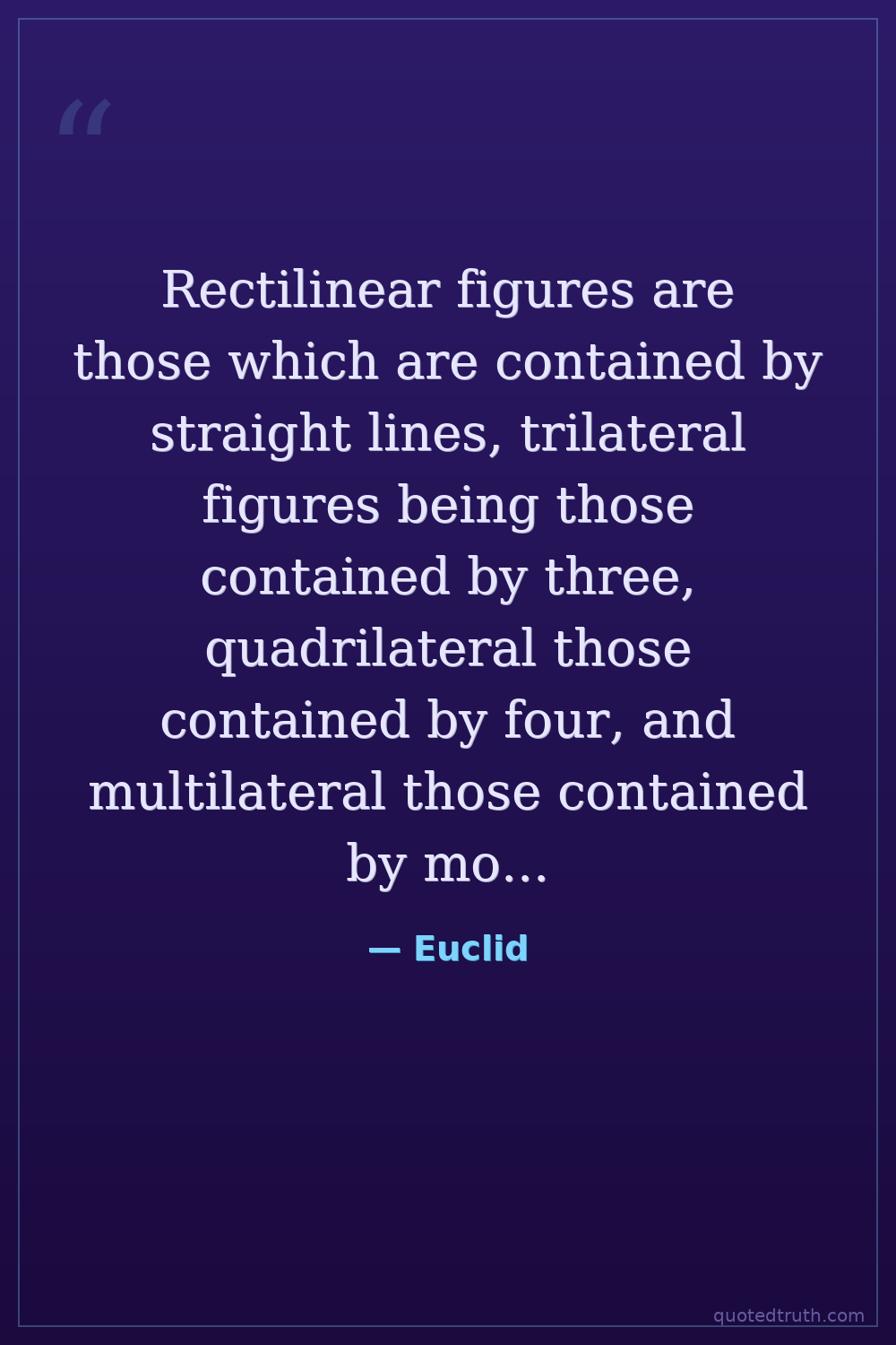 Rectilinear figures are those which are contained by straight lines, trilateral figures being those contained by three, quadrilateral those contained by four, and multilateral those contained by more than four straight lines.