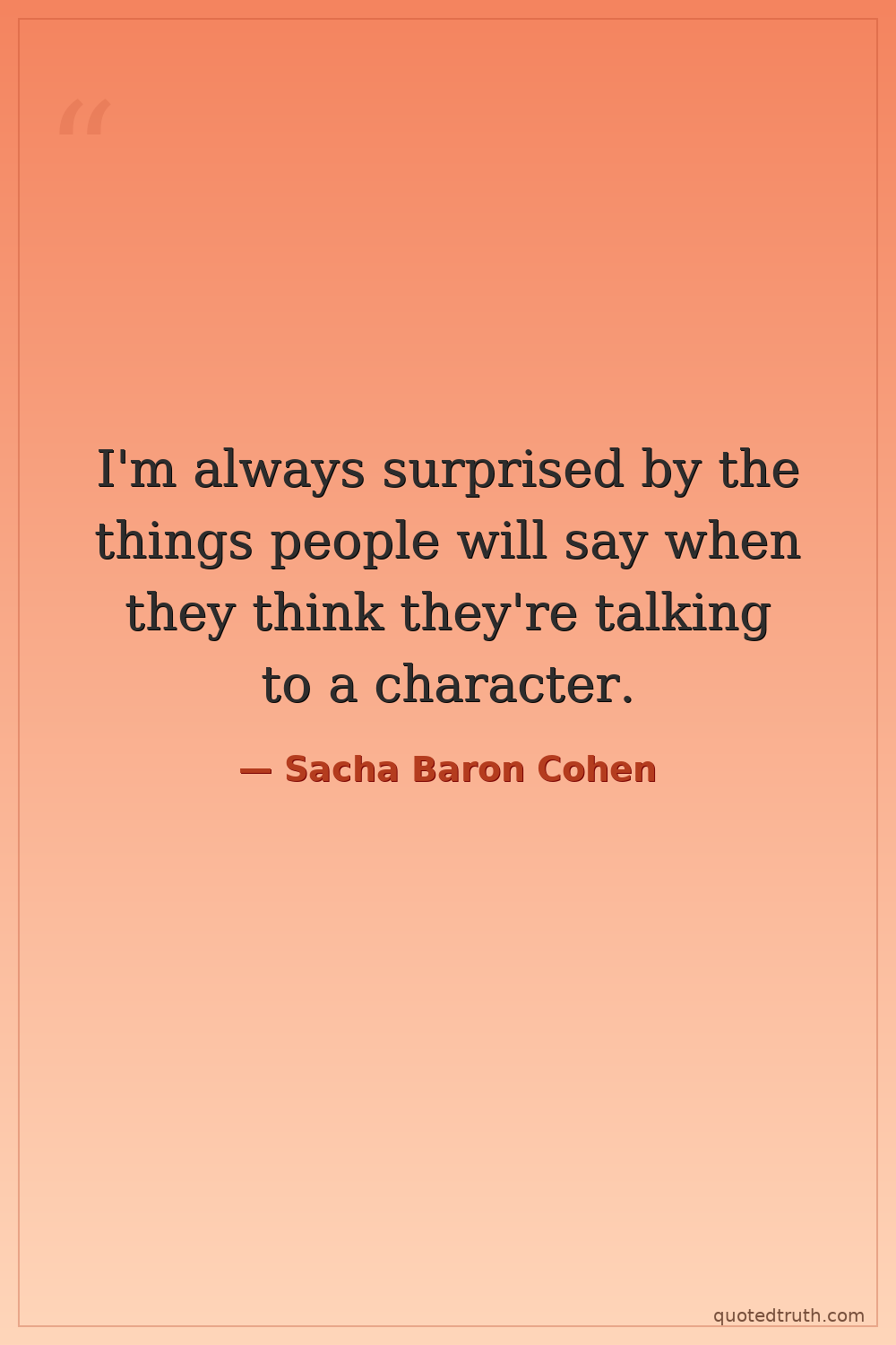 Controversial"I used to do stand-up, and I'd get the occasional laugh, but I'd never get that full-on, belly-aching laughter that Borat got. It's like a different kind of laugh. It's a laugh of shock, a laugh of di…"
