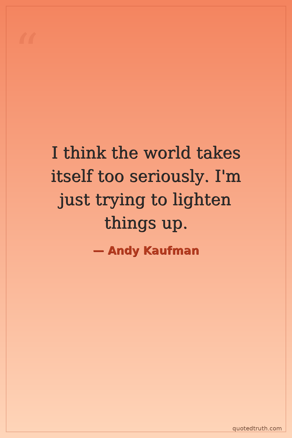 I think the world takes itself too seriously. I'm just trying to lighten things up.