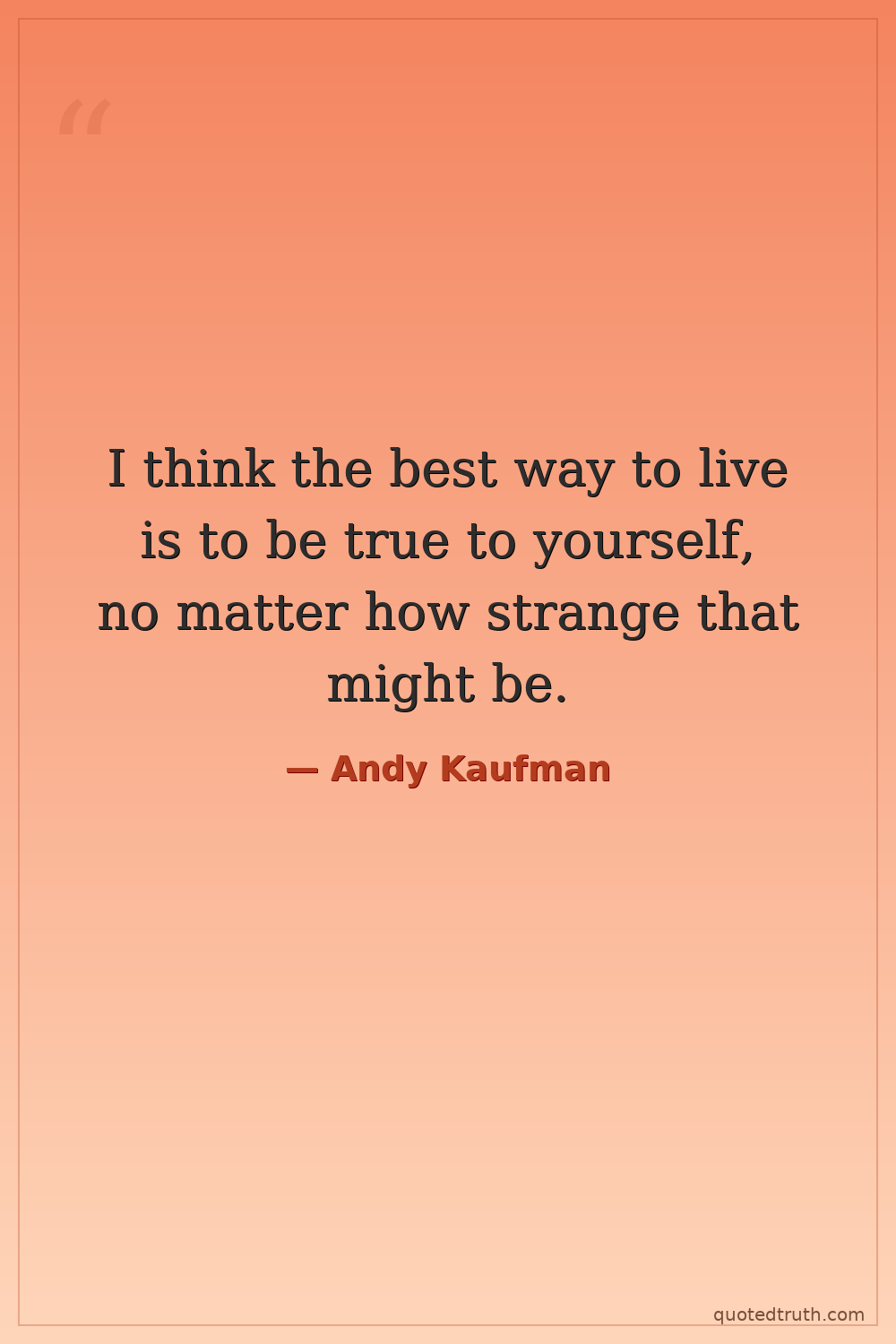 I think the best way to live is to be true to yourself, no matter how strange that might be.