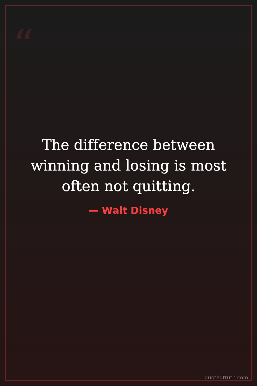 The difference between winning and losing is most often not quitting.