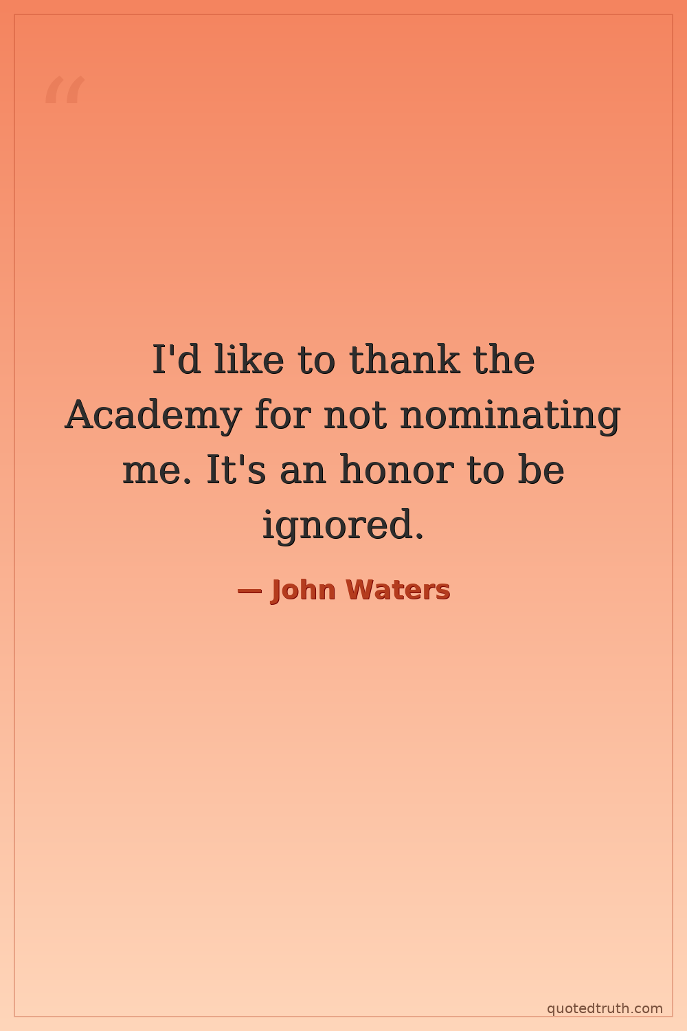 I'd like to thank the Academy for not nominating me. It's an honor to be ignored.