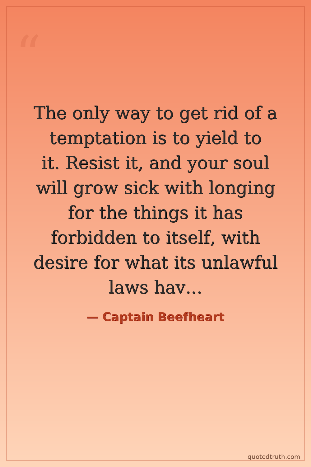 The only way to get rid of a temptation is to yield to it. Resist it, and your soul will grow sick with longing for the things it has forbidden to itself, with desire for what its unlawful laws have made unlawful.