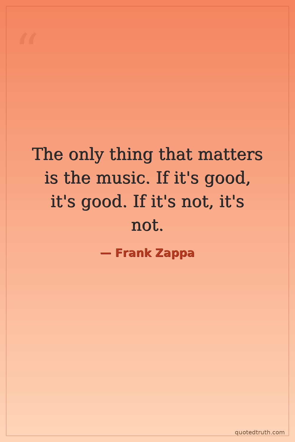 The only thing that matters is the music. If it's good, it's good. If it's not, it's not.