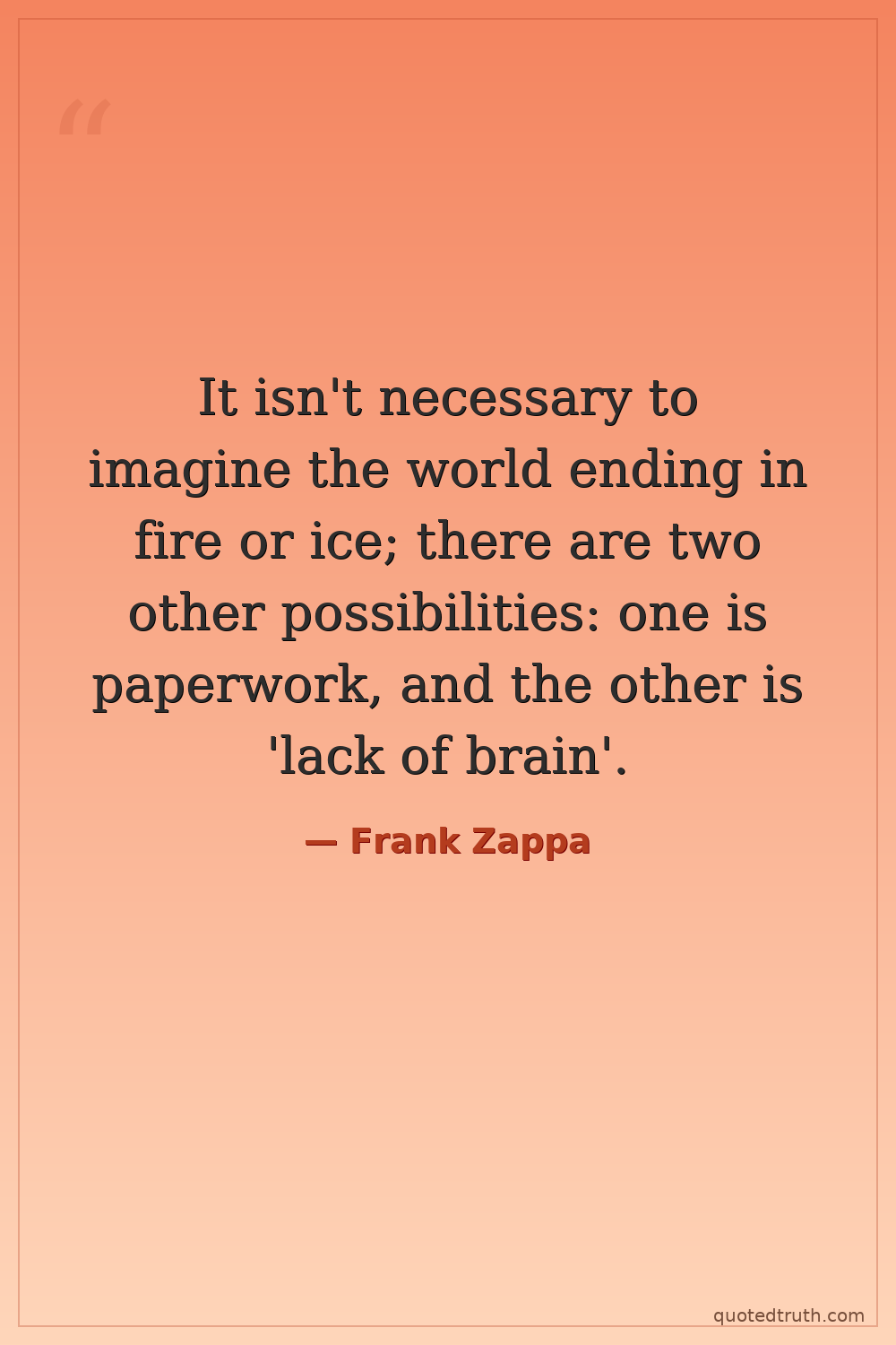 It isn't necessary to imagine the world ending in fire or ice; there are two other possibilities: one is paperwork, and the other is 'lack of brain'.