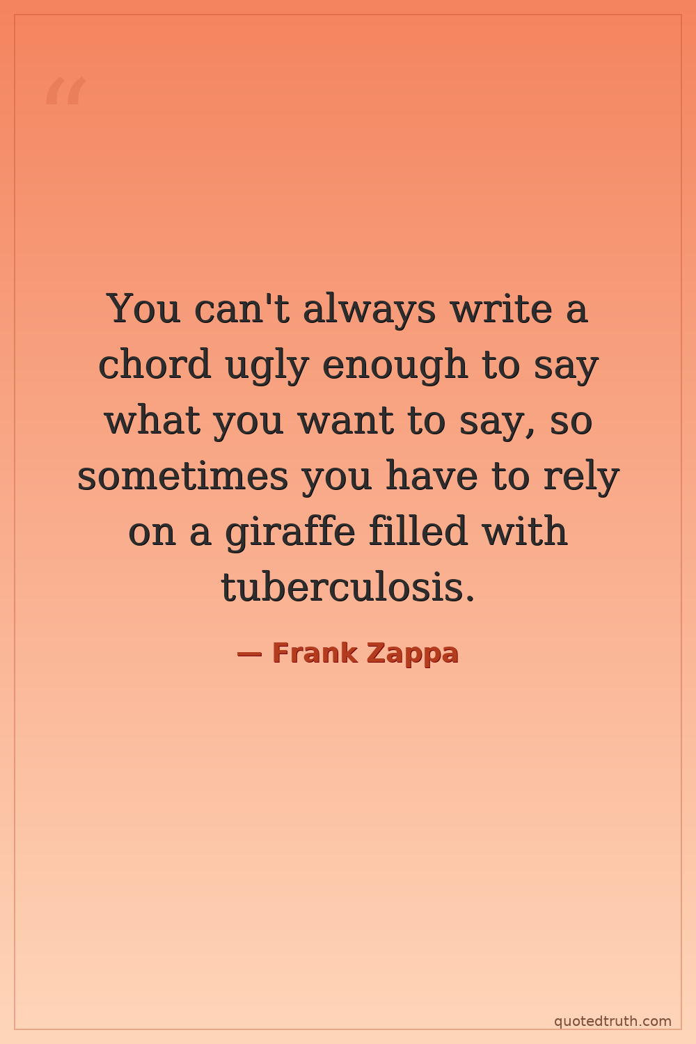 You can't always write a chord ugly enough to say what you want to say, so sometimes you have to rely on a giraffe filled with tuberculosis.