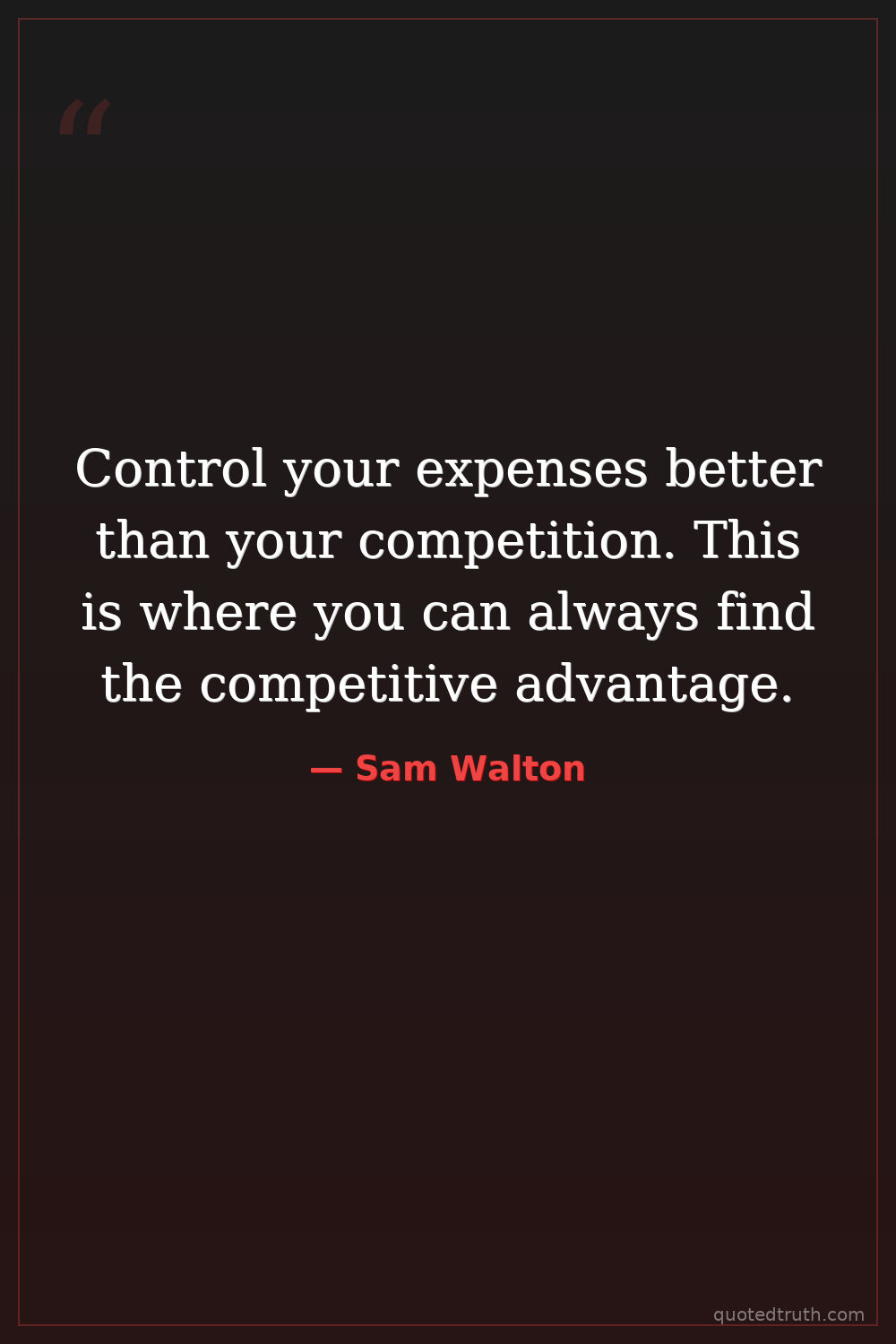 Control your expenses better than your competition. This is where you can always find the competitive advantage.