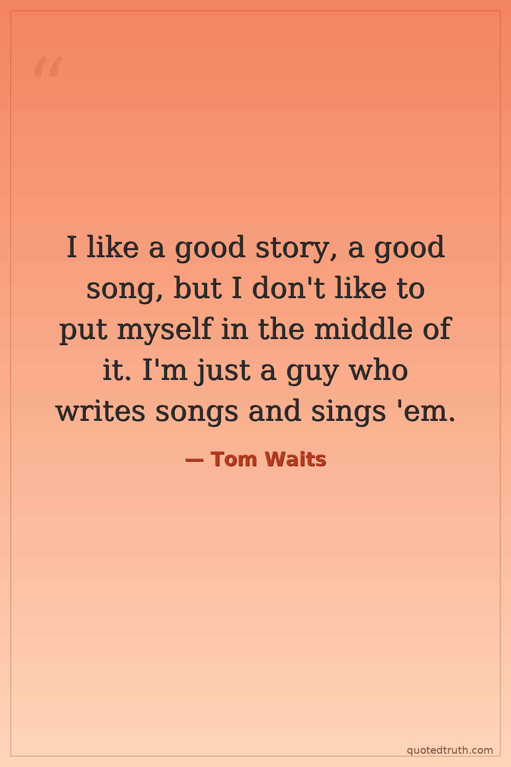 I like a good story, a good song, but I don't like to put myself in the middle of it. I'm just a guy who writes songs and sings 'em.