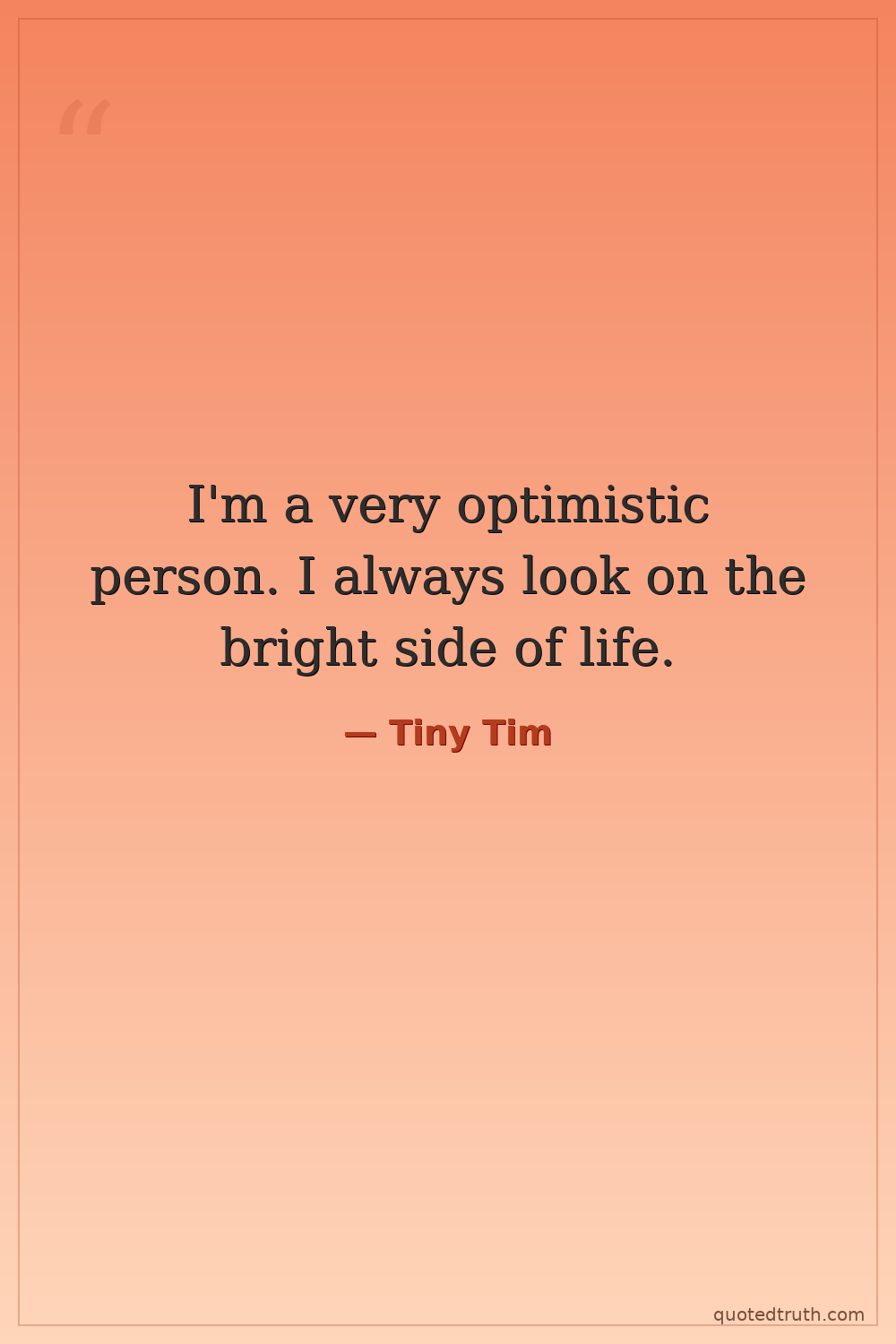 I'm a very optimistic person. I always look on the bright side of life.