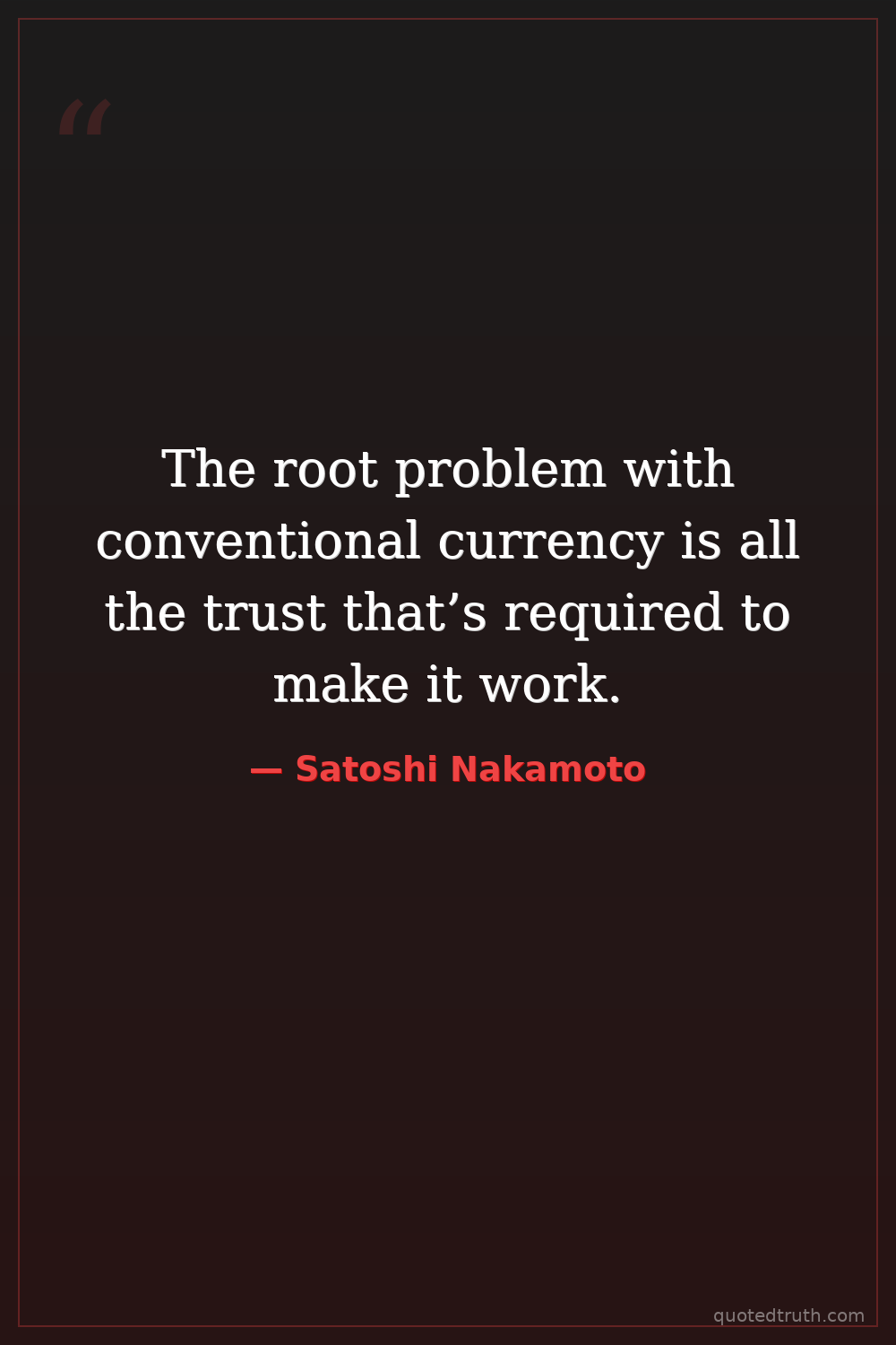 The root problem with conventional currency is all the trust that’s required to make it work.