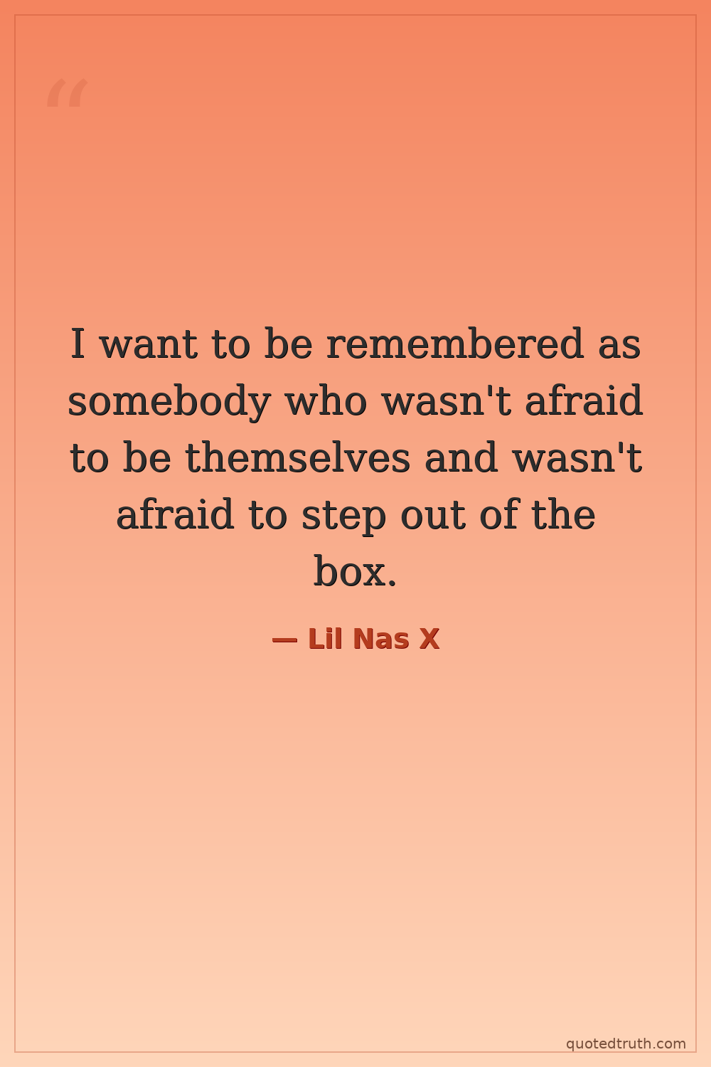 I want to be remembered as somebody who wasn't afraid to be themselves and wasn't afraid to step out of the box.