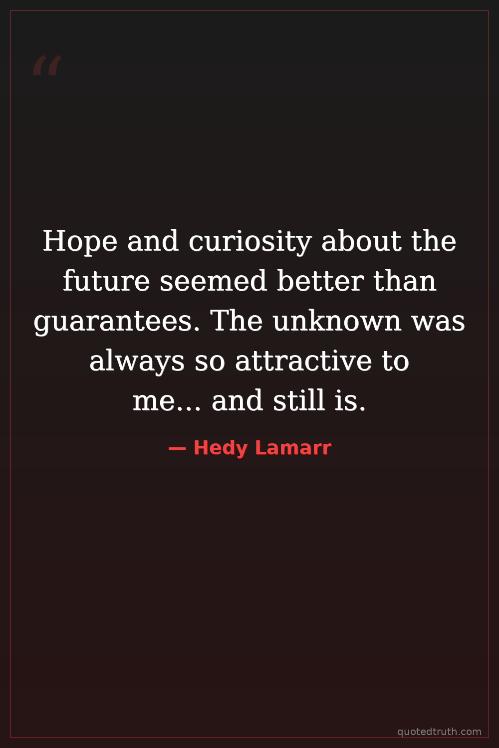 Hope and curiosity about the future seemed better than guarantees. The unknown was always so attractive to me... and still is.