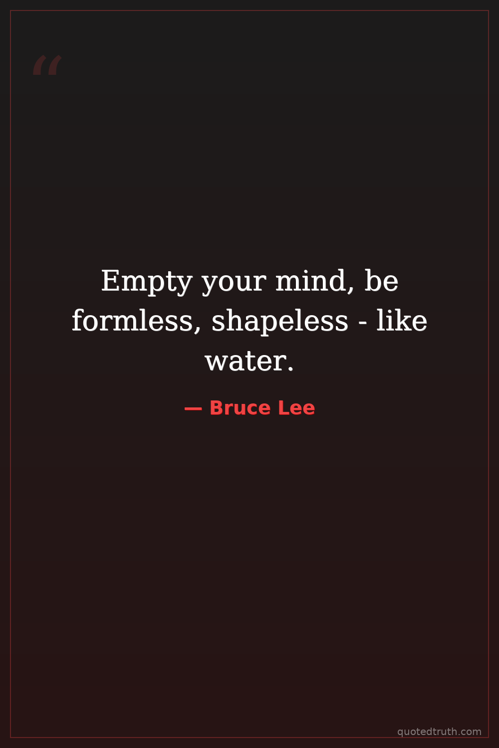 "Empty your mind, be formless, shapeless — like water. Now you put water in a cup, it becomes the cup; you put water into a bottle, it becomes the bottle; you put it in a teapot, it becomes the teapot.…"