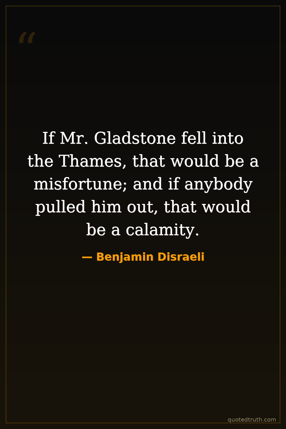 If Mr. Gladstone fell into the Thames, that would be a misfortune; and if anybody pulled him out, that would be a calamity.