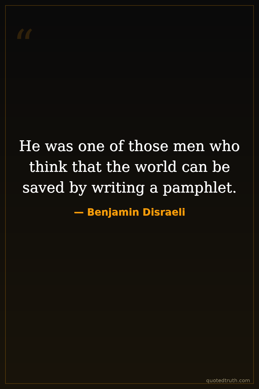 He was one of those men who think that the world can be saved by writing a pamphlet.