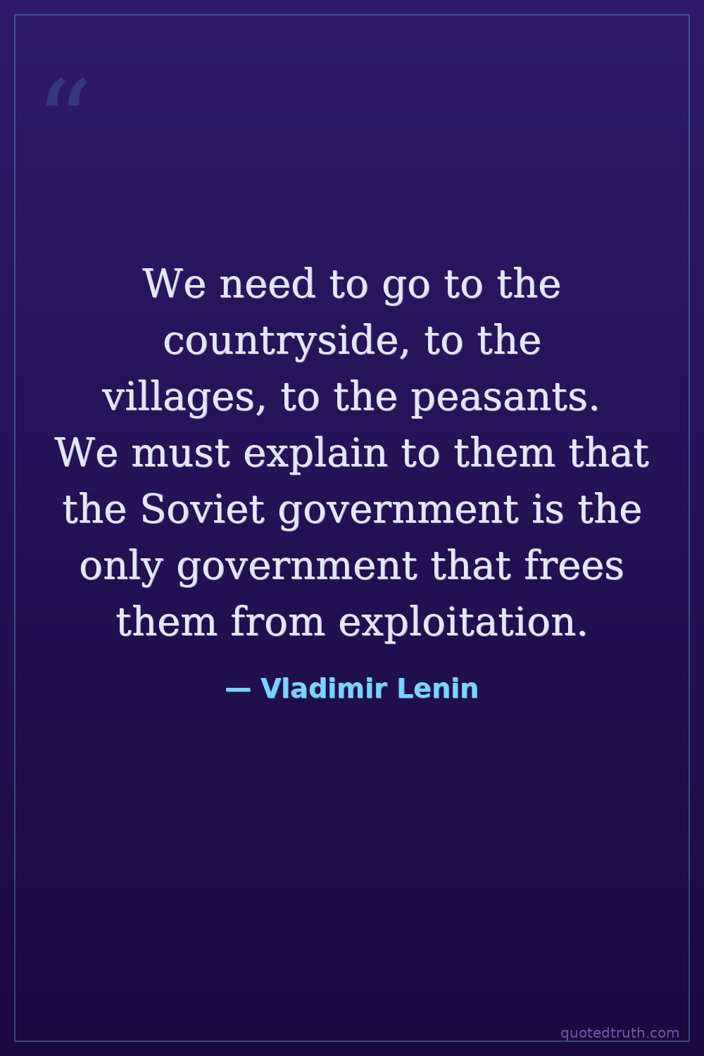 We need to go to the countryside, to the villages, to the peasants. We must explain to them that the Soviet government is the only government that frees them from exploitation.