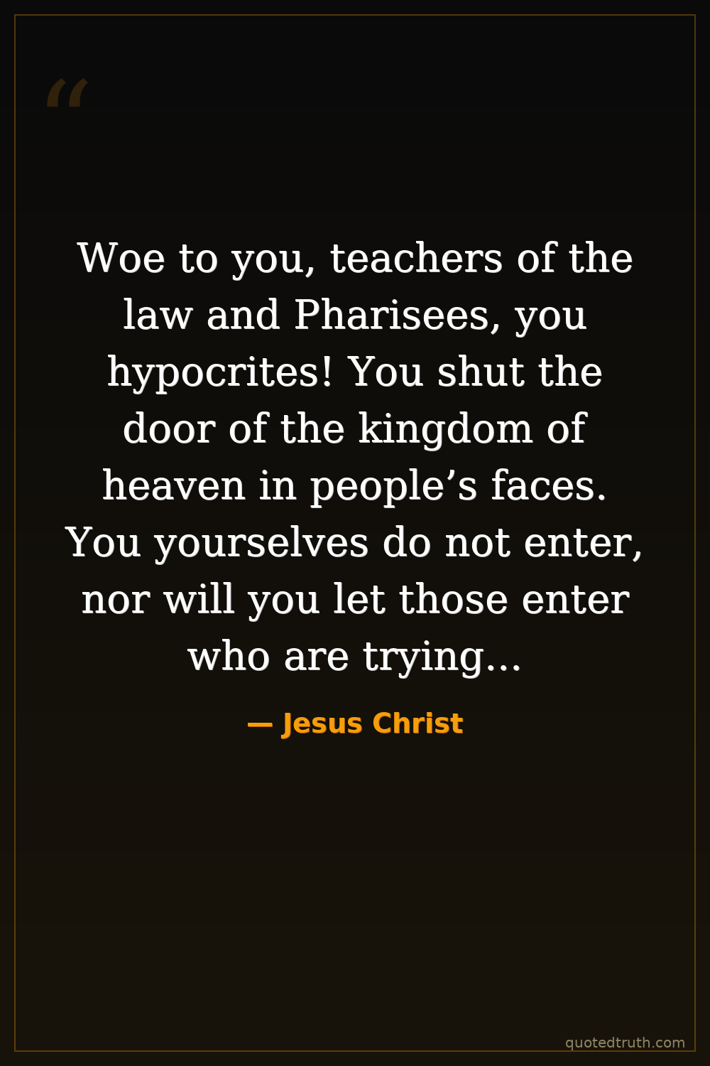 Woe to you, teachers of the law and Pharisees, you hypocrites! You shut the door of the kingdom of heaven in people’s faces. You yourselves do not enter, nor will you let those enter who are trying to.