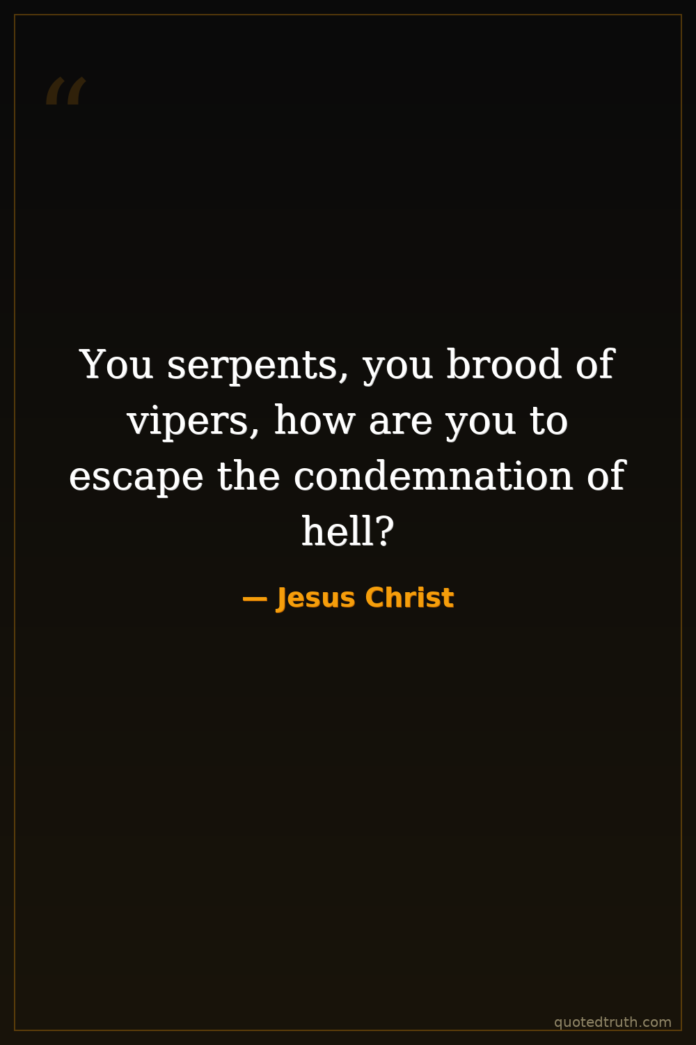 You serpents, you brood of vipers, how are you to escape the condemnation of hell?