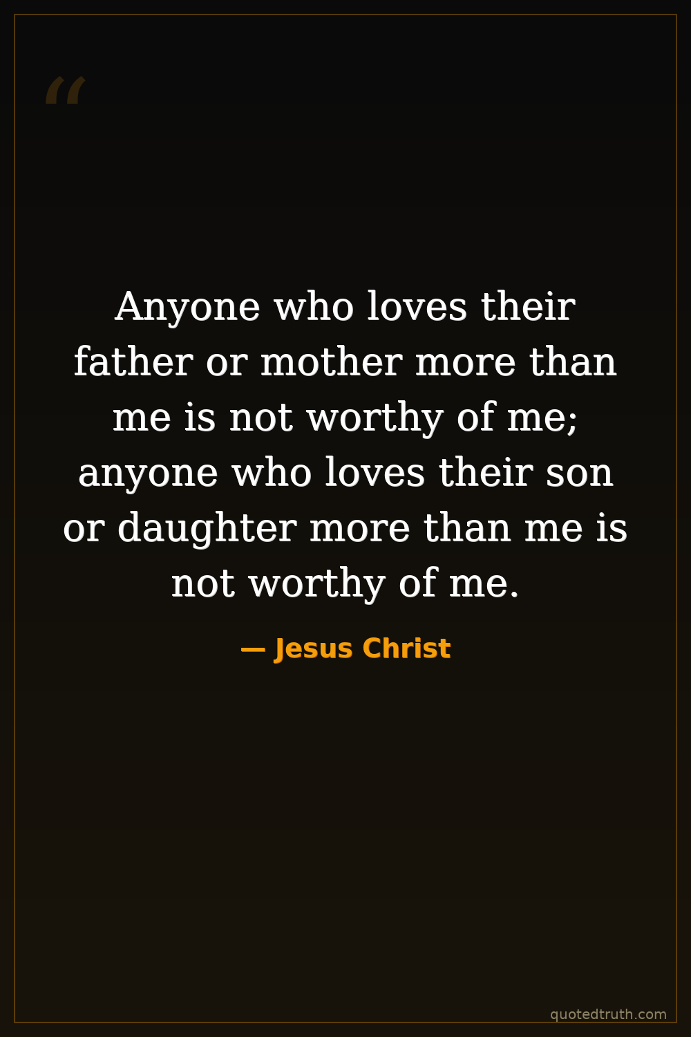 Anyone who loves their father or mother more than me is not worthy of me; anyone who loves their son or daughter more than me is not worthy of me.