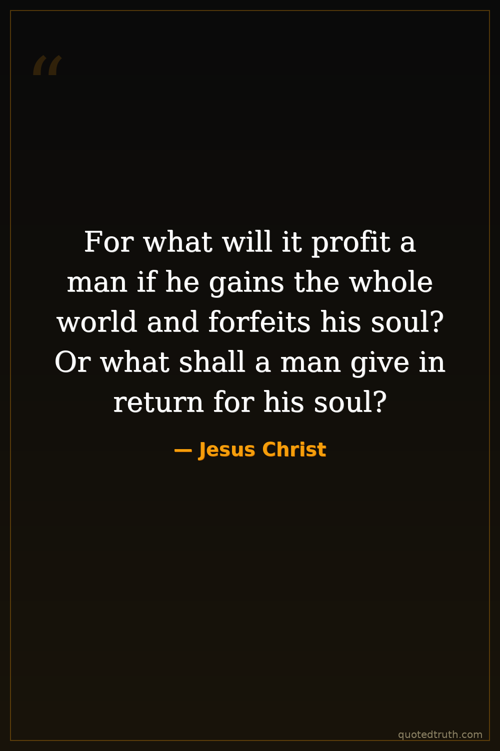 For what will it profit a man if he gains the whole world and forfeits his soul? Or what shall a man give in return for his soul?