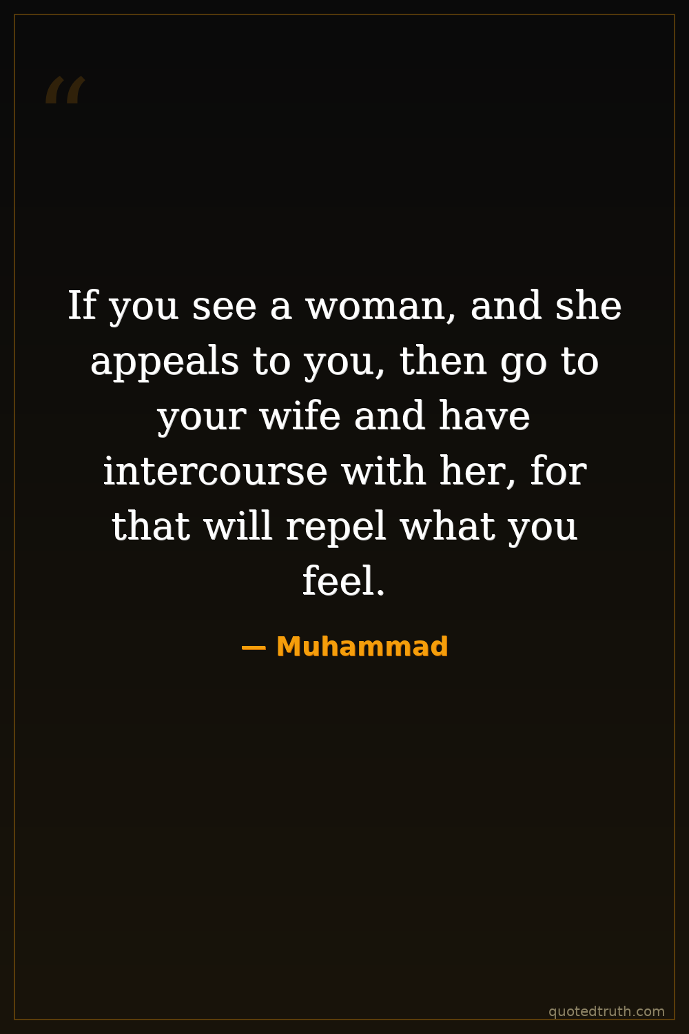 If you see a woman, and she appeals to you, then go to your wife and have intercourse with her, for that will repel what you feel.